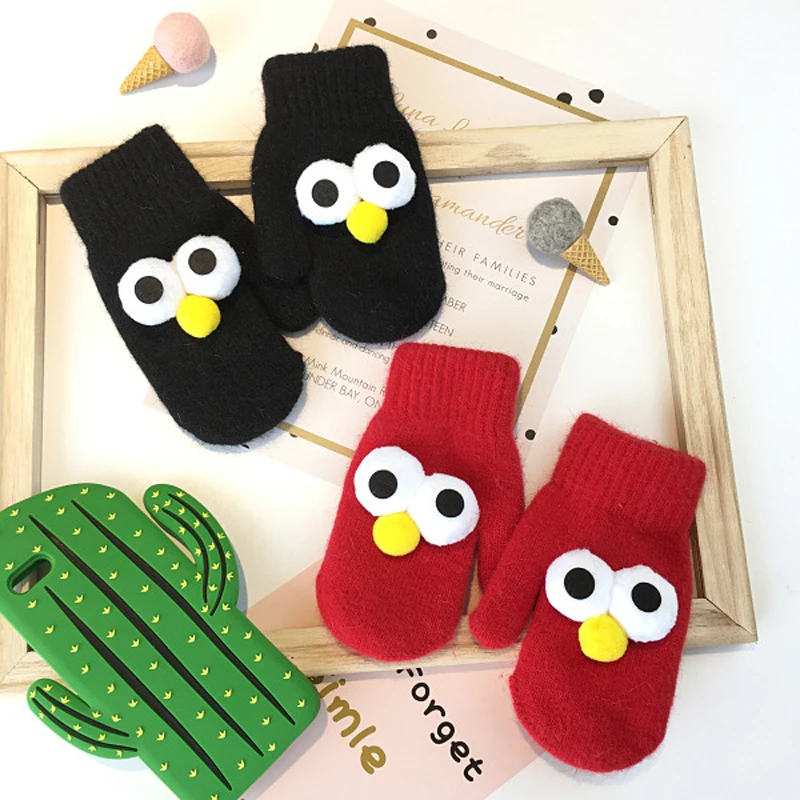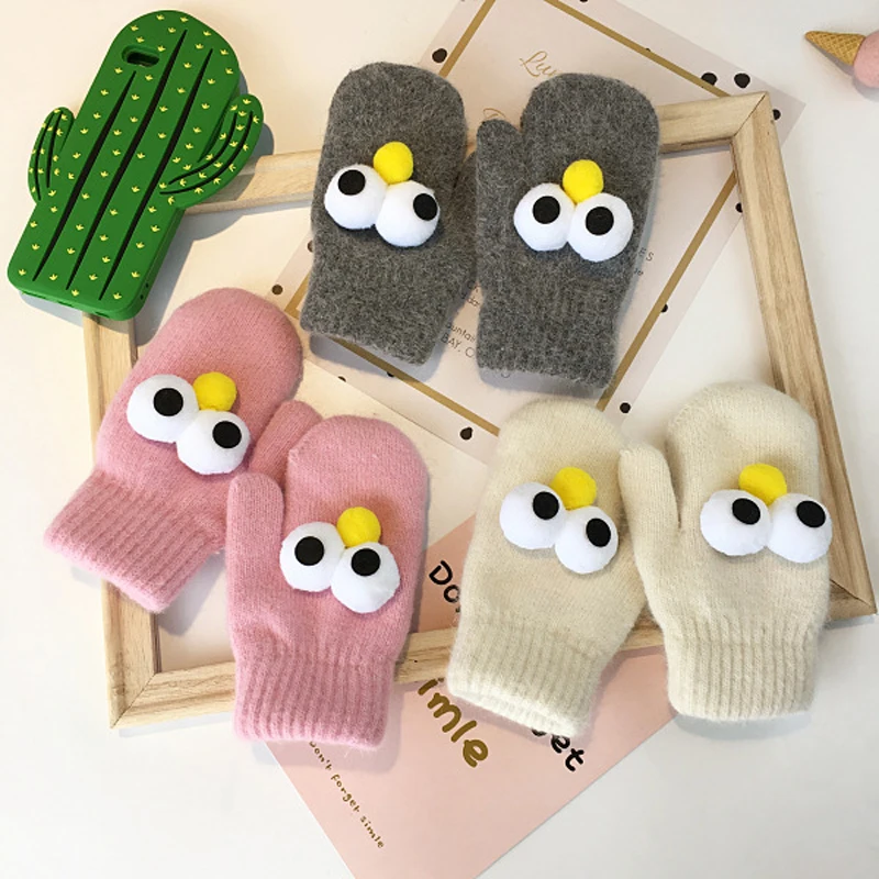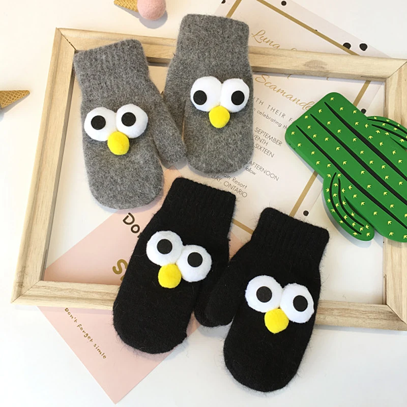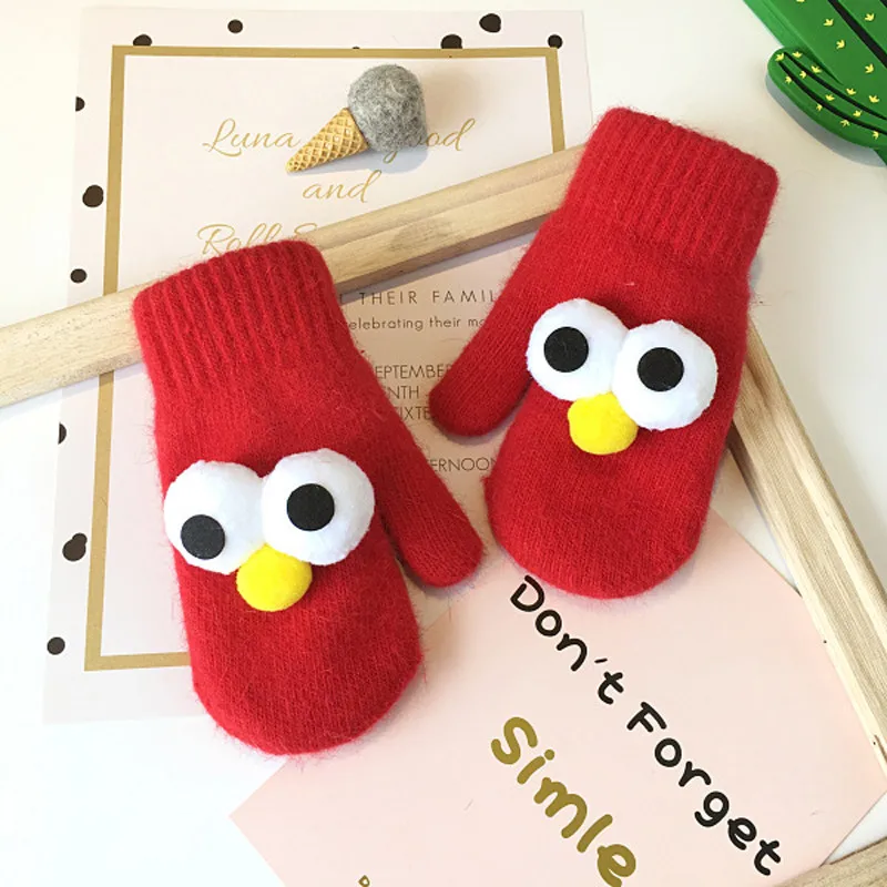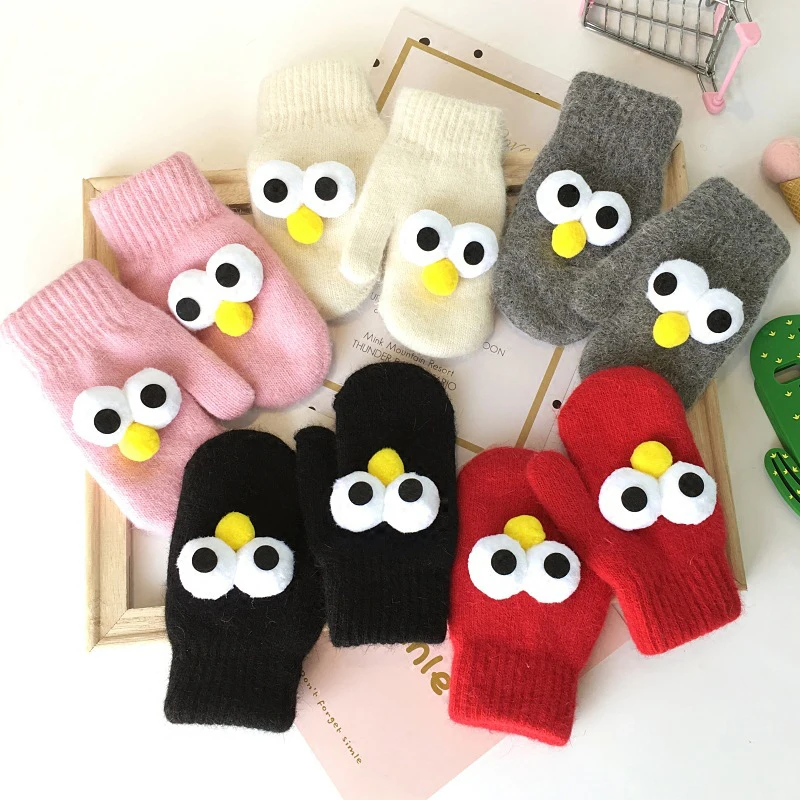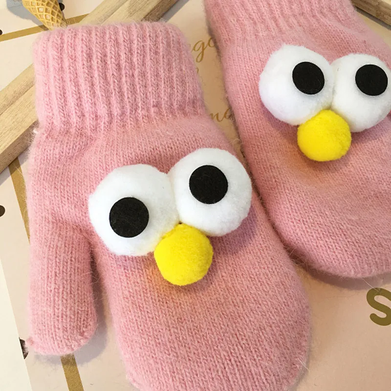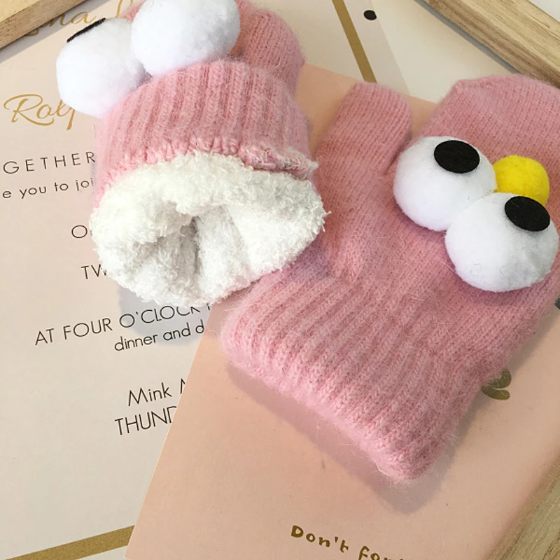 BalleenShiny Cartoon Thicken Plush Gloves Children Kids Fashion Keep Warm Gloves Cute Big Eyes Mitten Winter Clothes Accessory