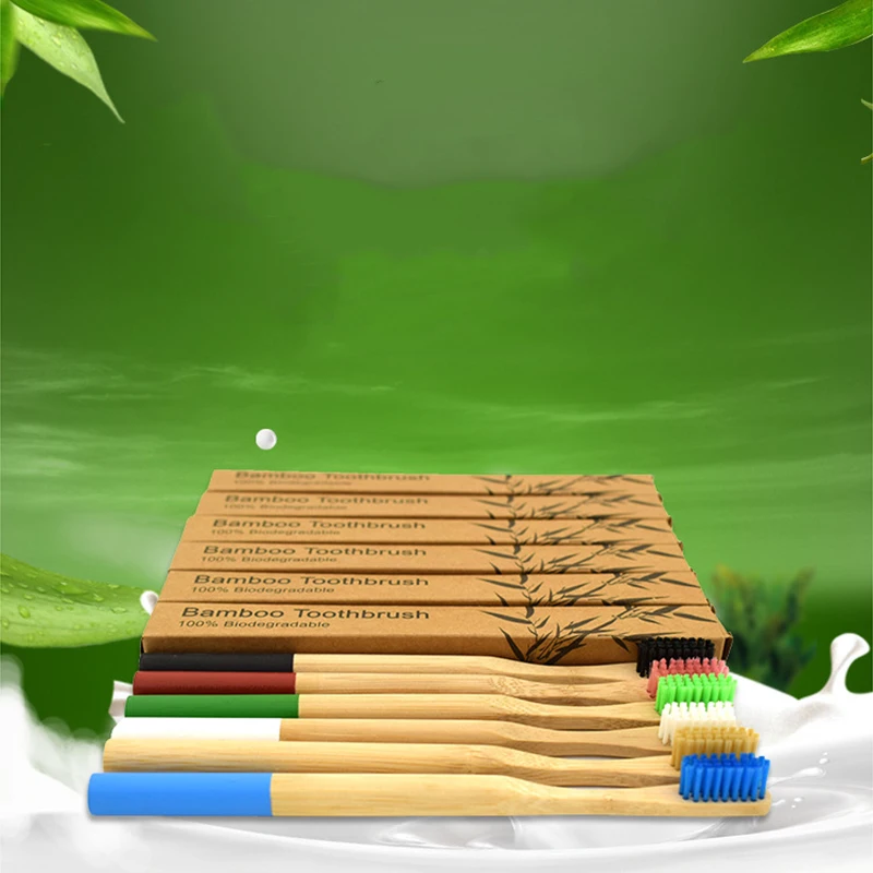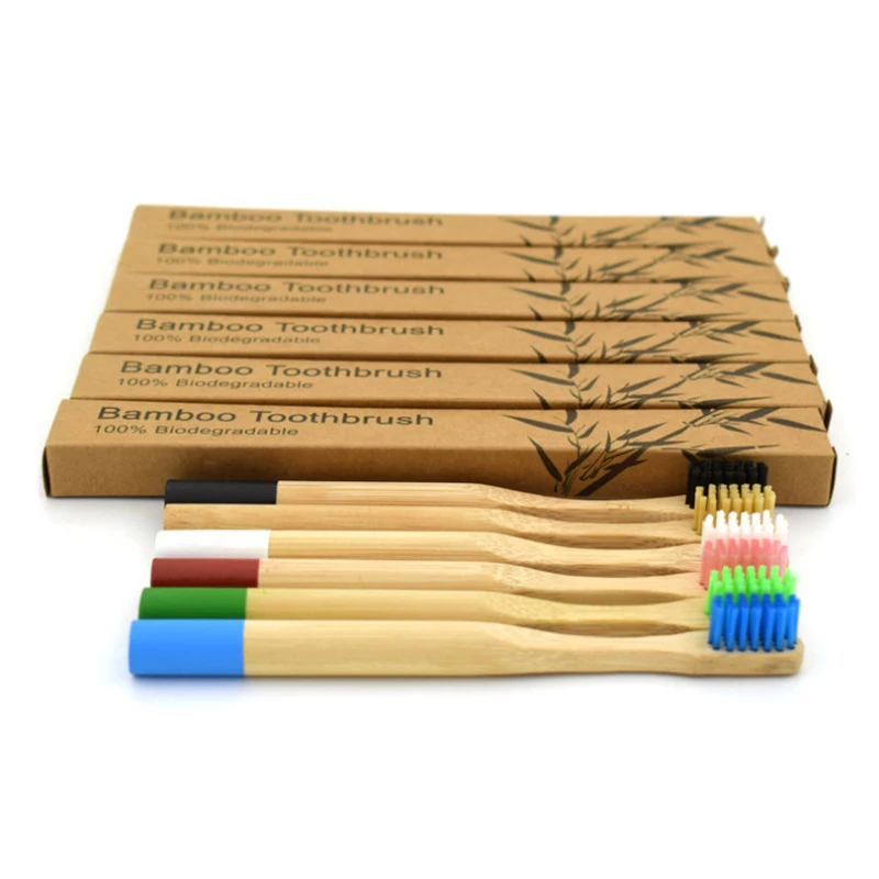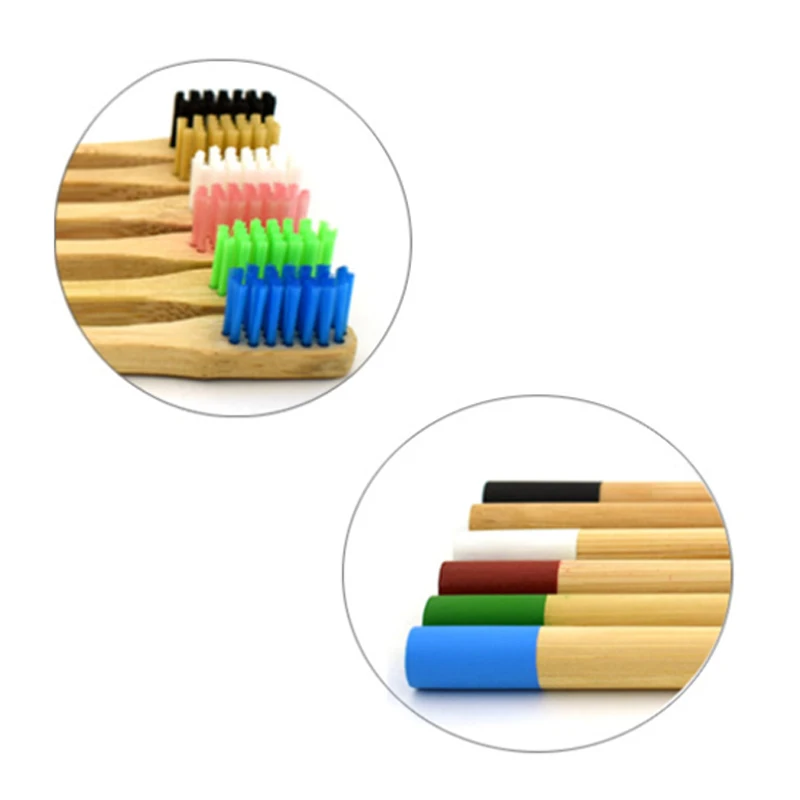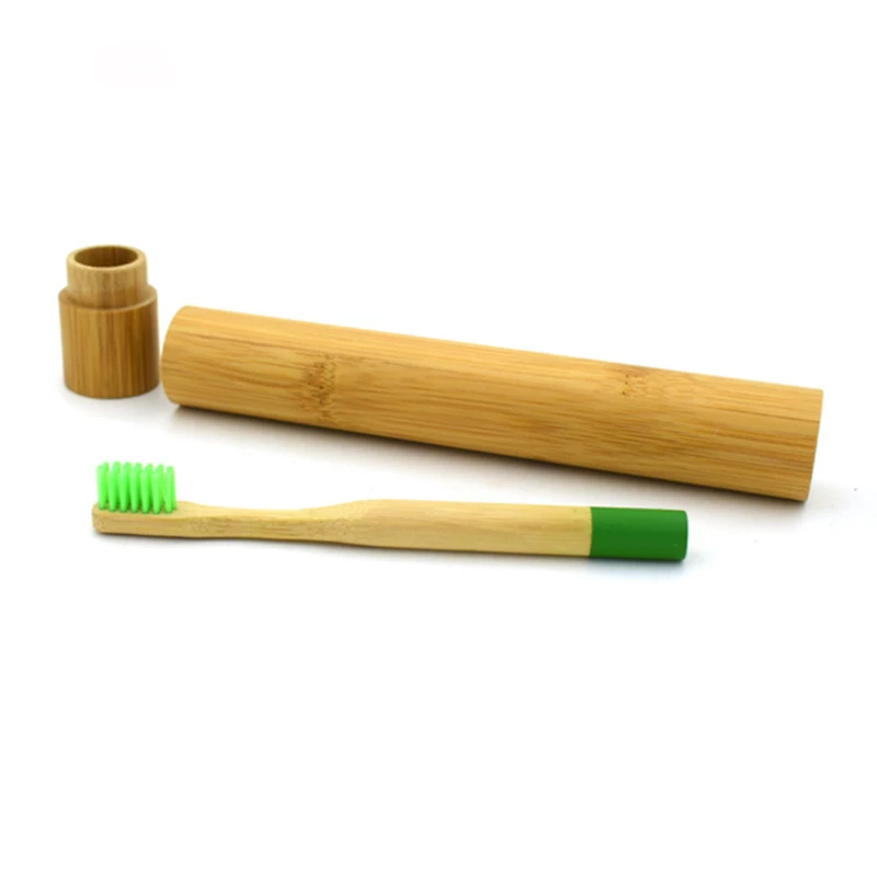 Bamboo Toothbrush 6 Colors Round Bamboo Handle Bristle Wooden Handle Low carbon Tooth brush for Children with toothbrush case