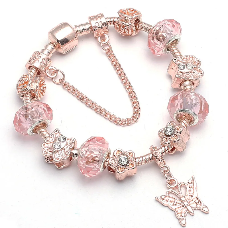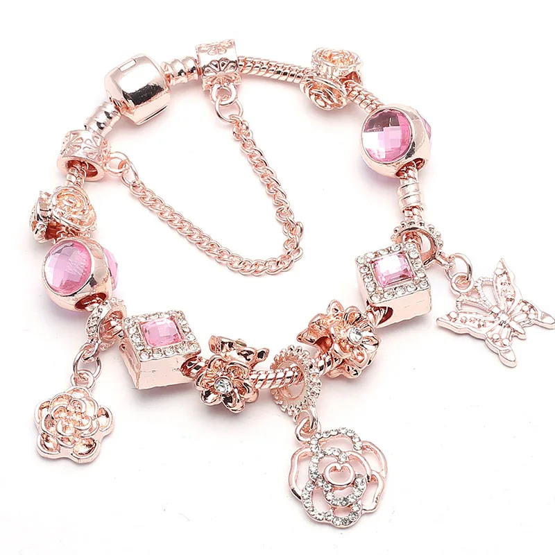 BAOPON Dropshipping European Style Vintage Silver Plated Crystal Charm Bracelet Women fit Original Fine Bracelet Jewelry Gift