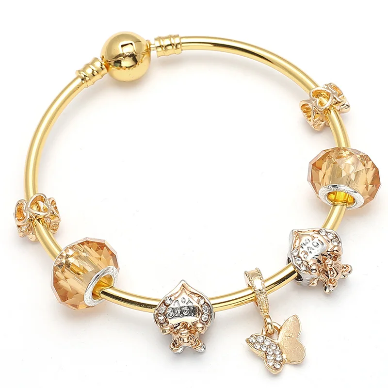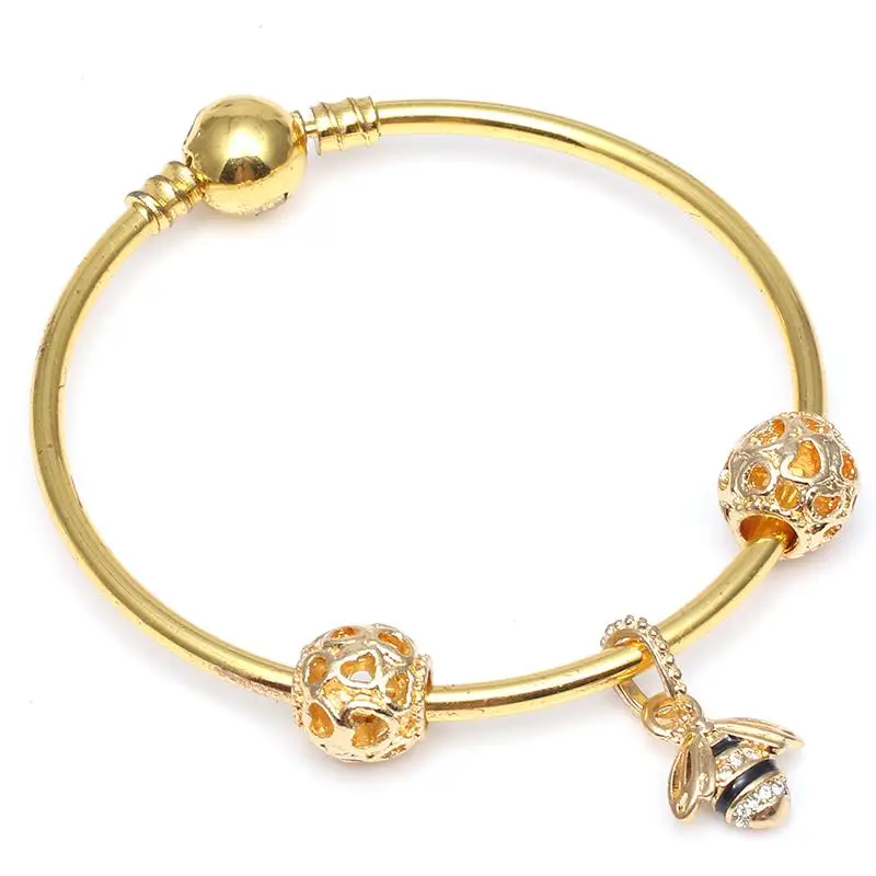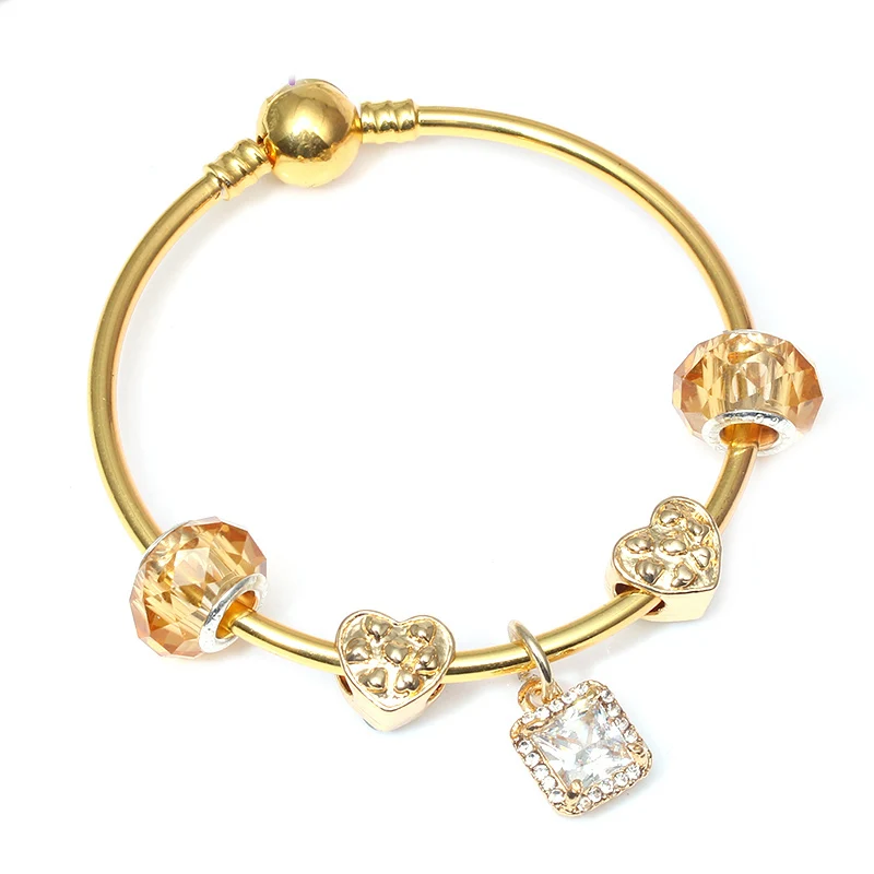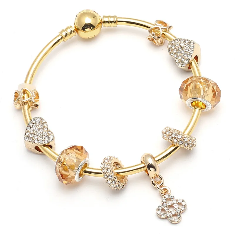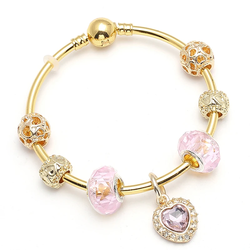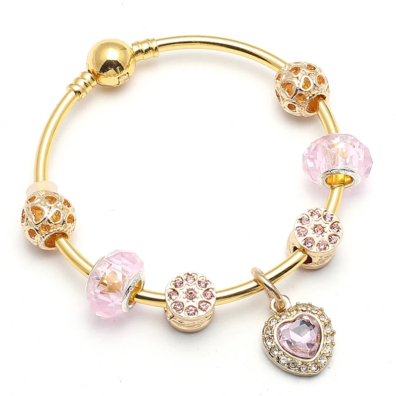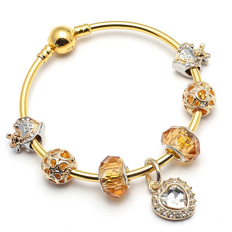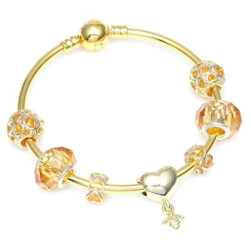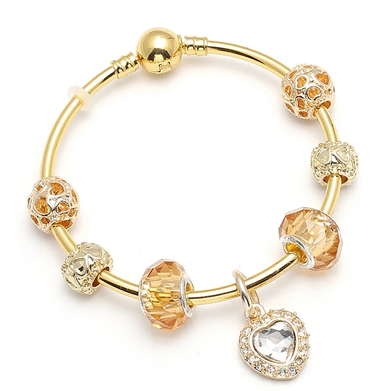 • Name:Gold Color Charm Bracelet &Bangles with Love Heart Crystal Pendant fit Fine Bracelets Women Wedding Jewelry Gift