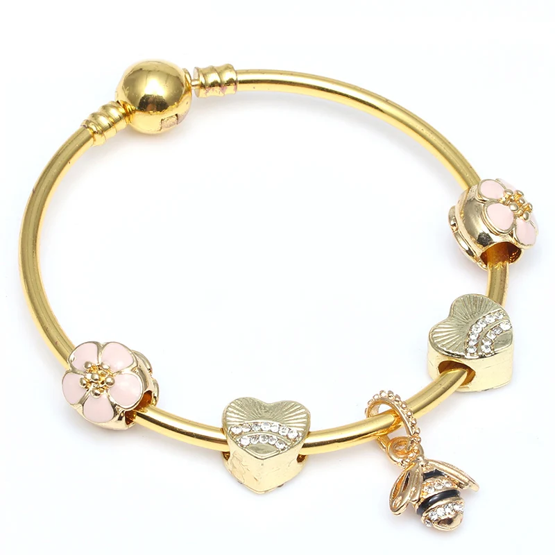 BAOPON Gold Color Charm Bracelet &Bangles with Love Heart Crystal Pendant fit Fine Bracelets Women Wedding Jewelry Gift