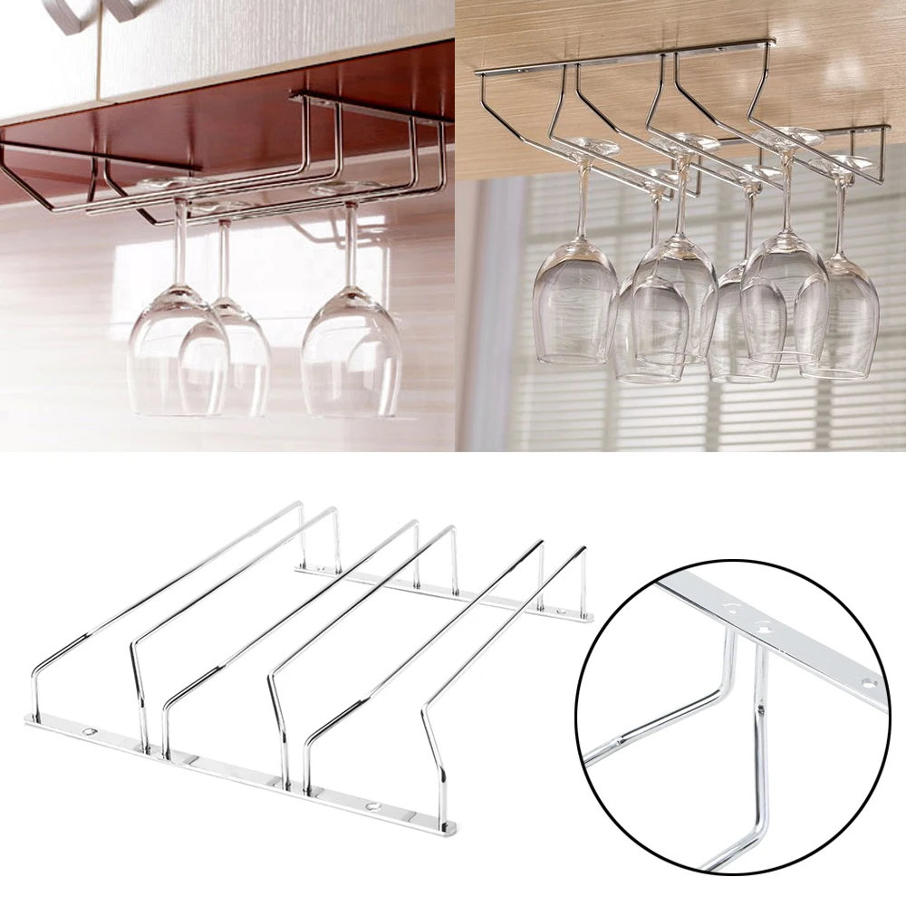 Bar Under Cabinet Display Hanging Shelf Stemware Wine Glass Holder Goblet Rack Bar Organization Bar & Wine Tools