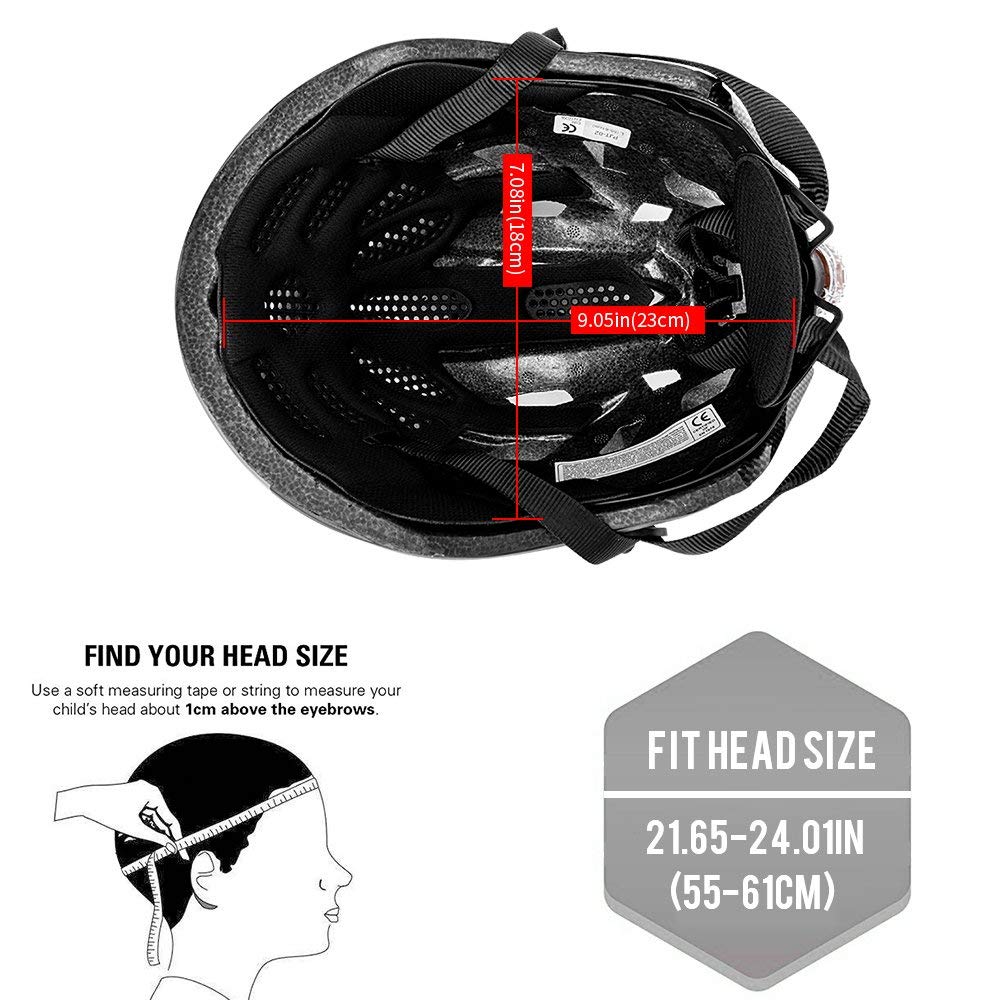 - 3.ADJUSTABLE SIZE: This Bike Helmet Fit Head Circumference 55-61CM (22-24in) for Adult Men Women Youth,Please measure your head size accurately