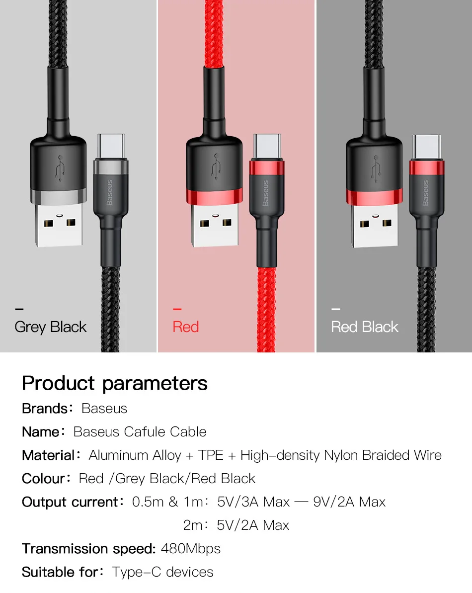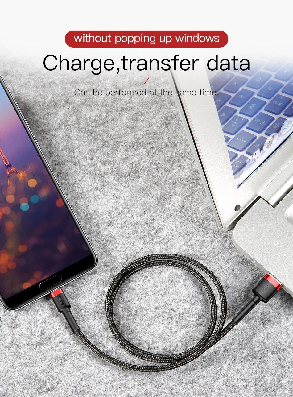 Baseus USB Type C Cable for Samsung Galaxy S9 S8 Plus Quick Charge QC3.0 USB C Fast Charging USB Charger Cable for One Plus 6 5t