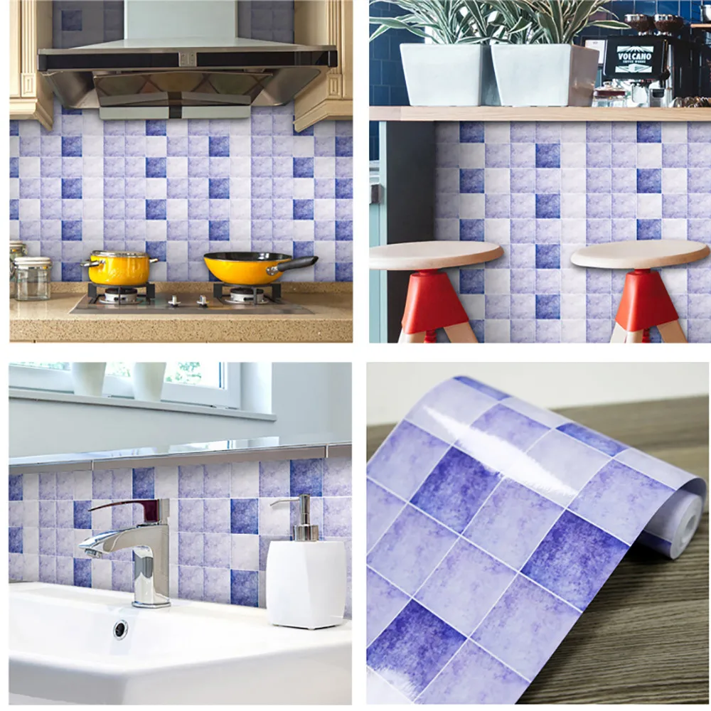 Bathroom Tile Sticker on the Wall 20x500cm Self Adhesive Wall Paper Waterproof Kitchen Bathroom PVC Mosaic Wallpaper Decor