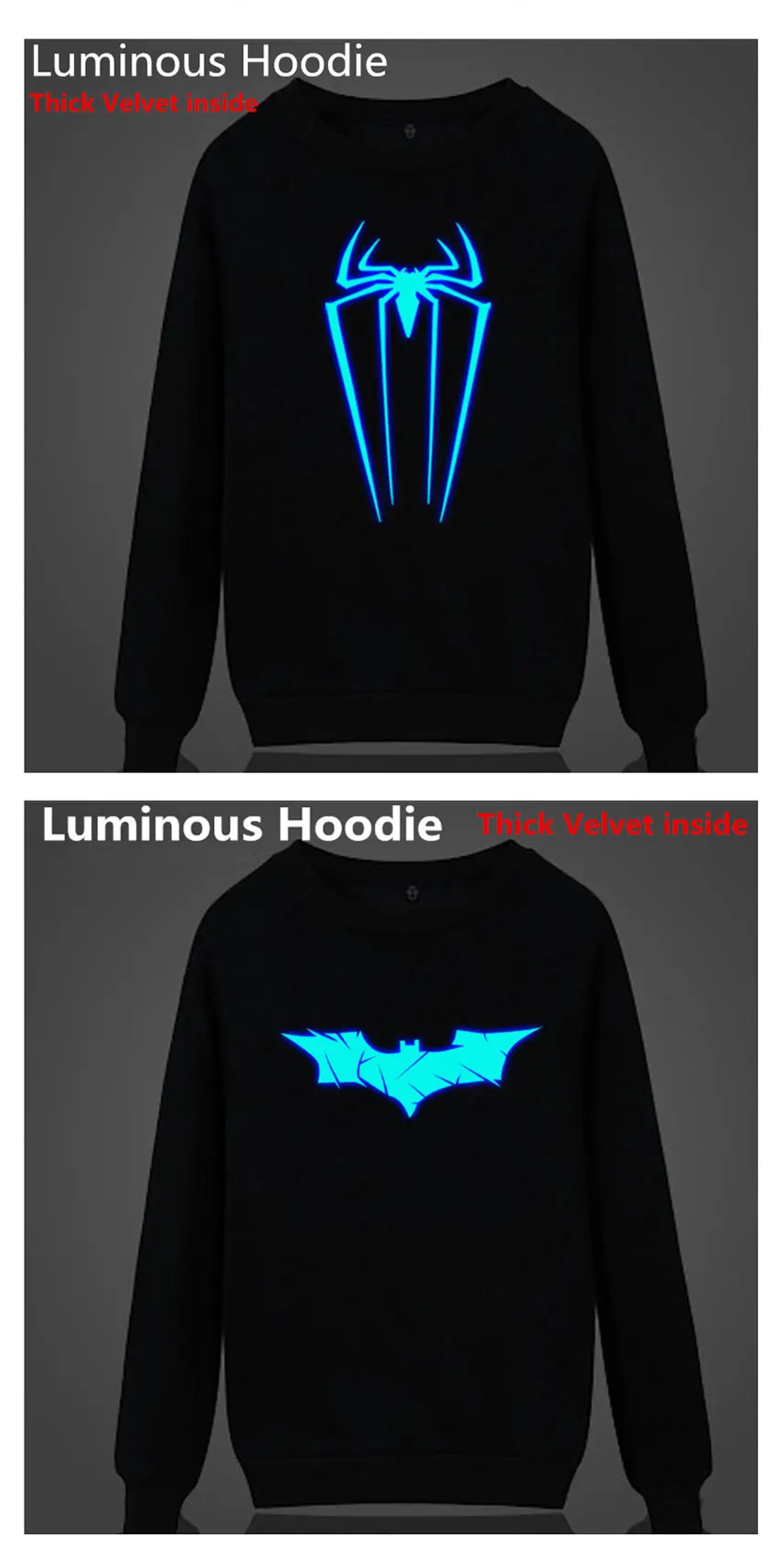 Height 95-185CM Novelty 3D Print Shirt children Luminous Hoodie Spring Autumn Winter Boy Tops Light Clothes Superman spiderman