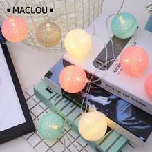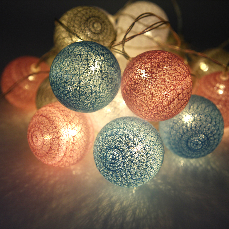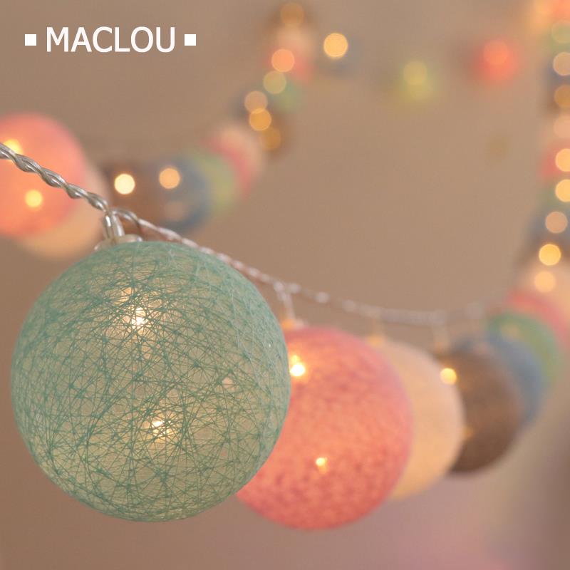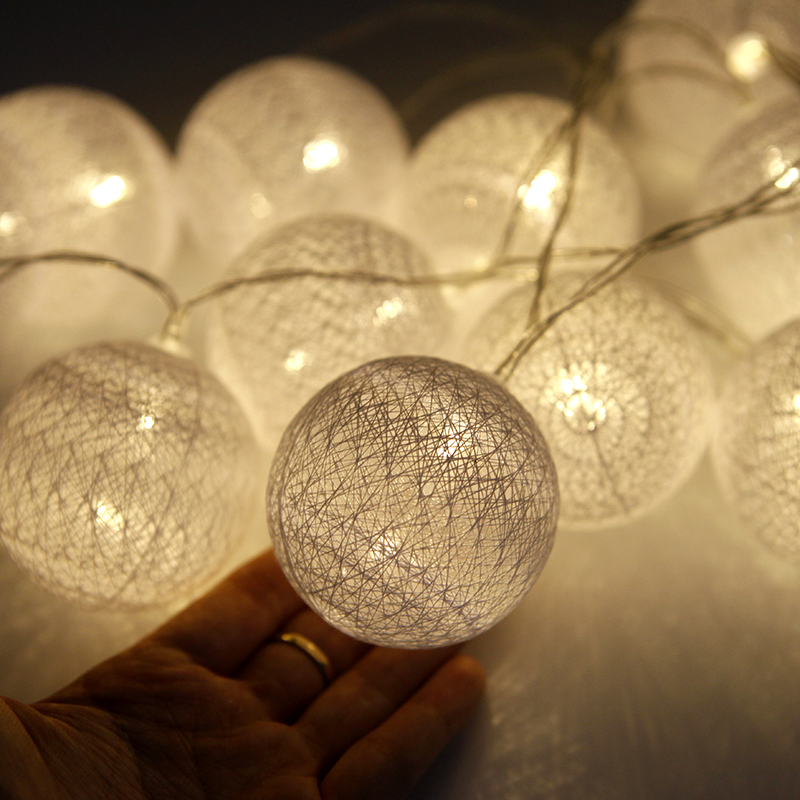 Battery 3M 1.5M 20LEDs 6CM Cotton Ball Light Battery Fairy Lights LED String Warm White New Year Light Thai Garland Balls