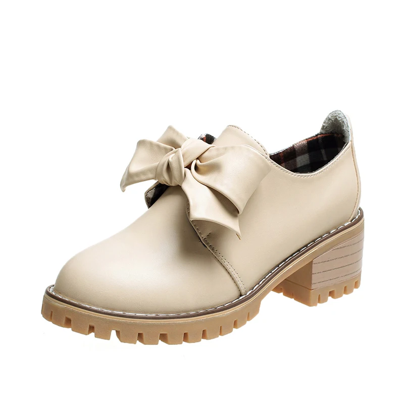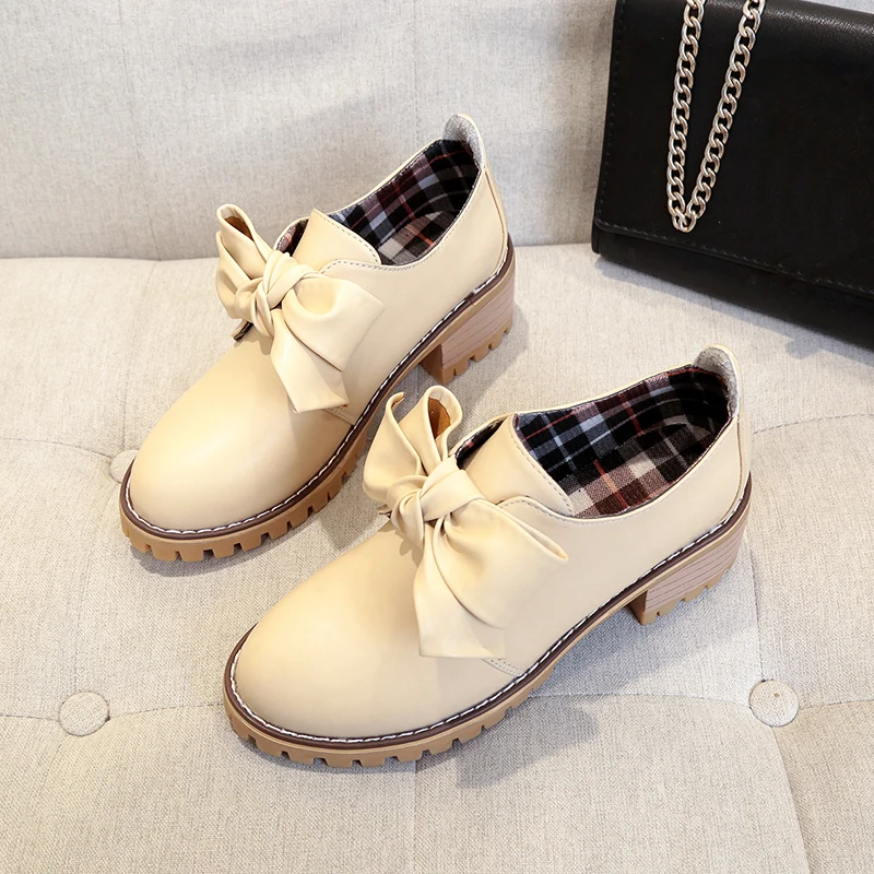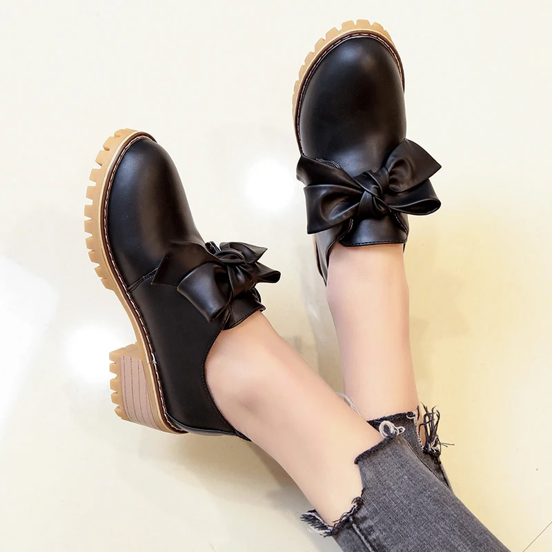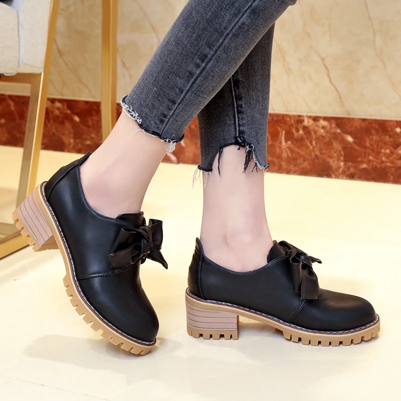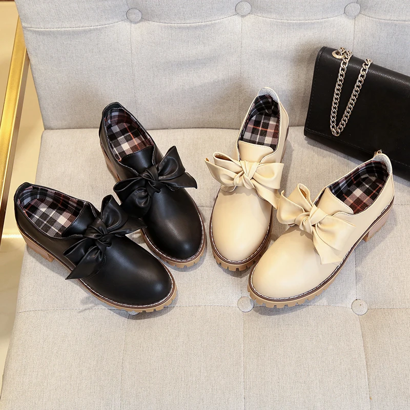 BeautyFeet Bow Knot Flat Shoes Round Toe Lace-Up Oxford Casual Shoes Woman Pu Leather Brogue Women Shoes Female Zapatos Mujer