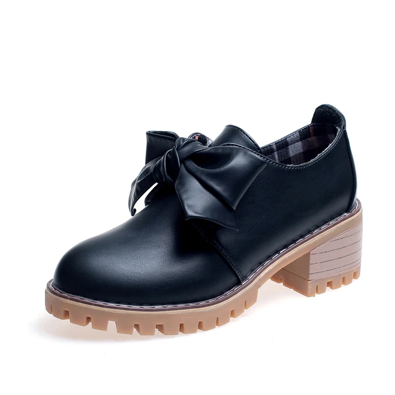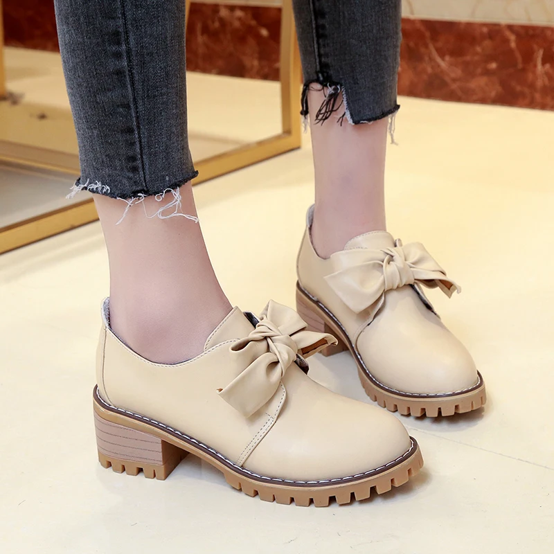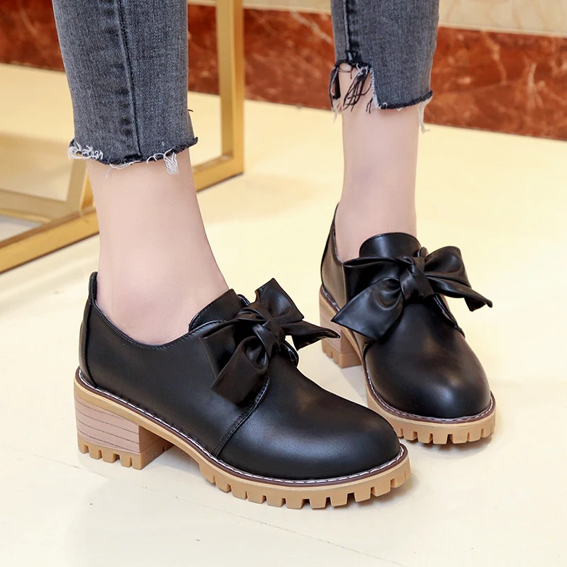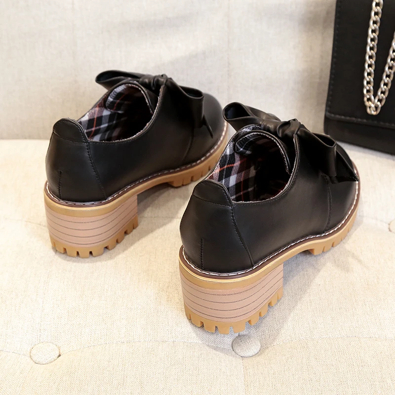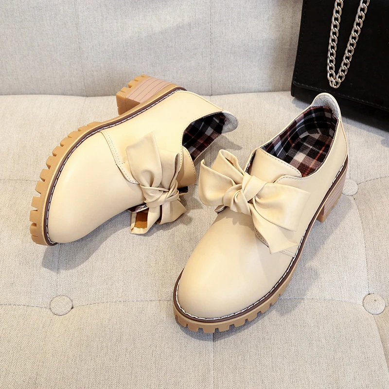 BeautyFeet Bow Knot Flat Shoes Round Toe Lace-Up Oxford Casual Shoes Woman Pu Leather Brogue Women Shoes Female Zapatos Mujer