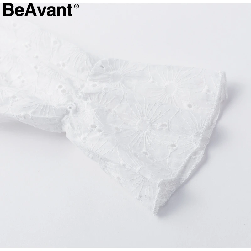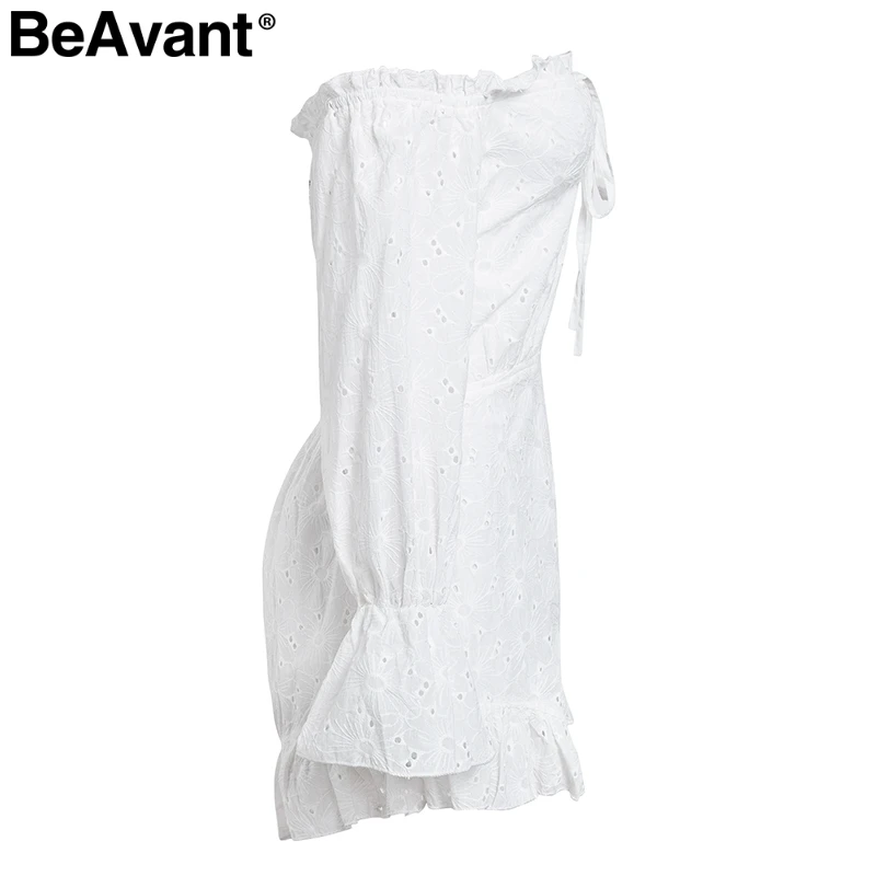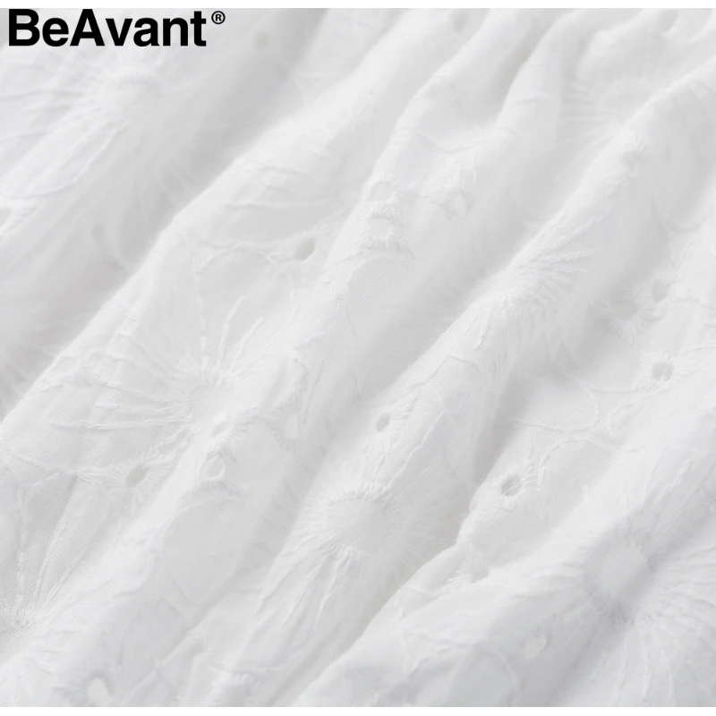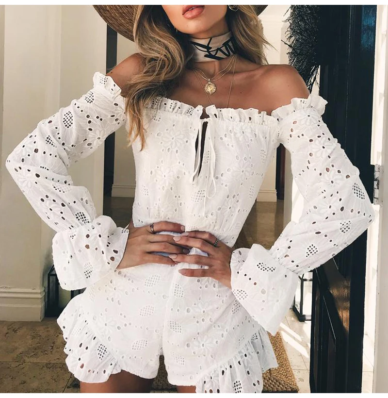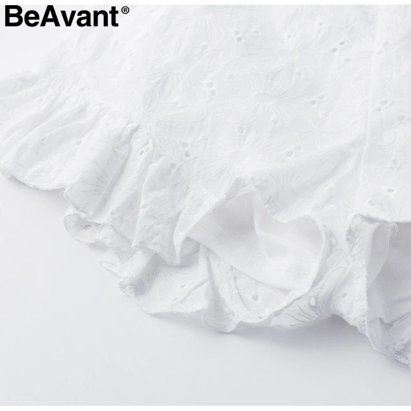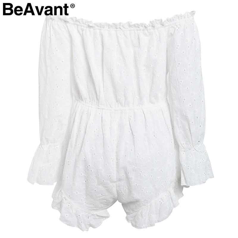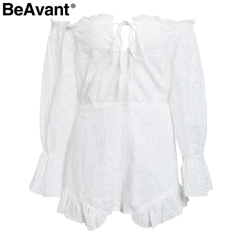BeAvant 2018 Cotton embroidery white rompers women Elastic waist summer playsuit jumpsuits Sexy hollow out short romper overalls