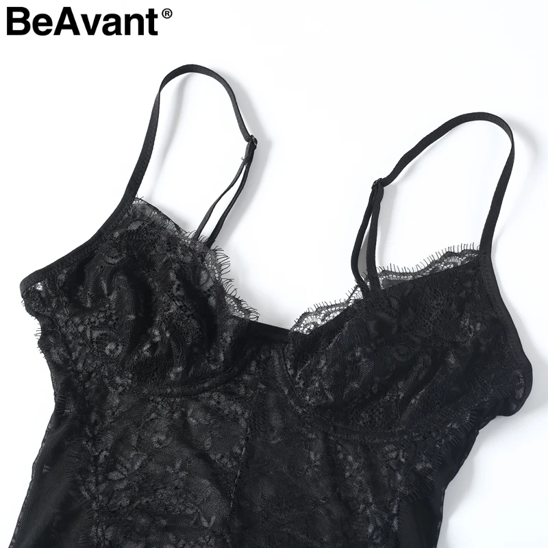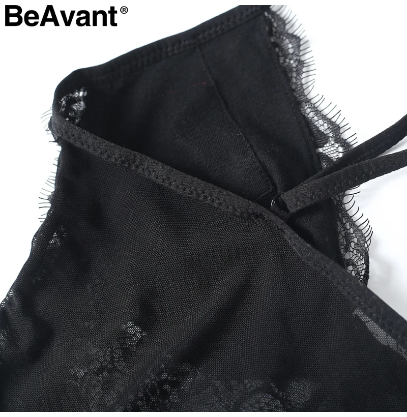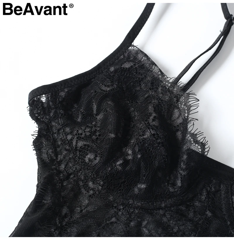 BeAvant Perspective backless lace bodysuit women Strap skinny black fringe jumpsuit romper 2018 summer playsuit bodysuit overall