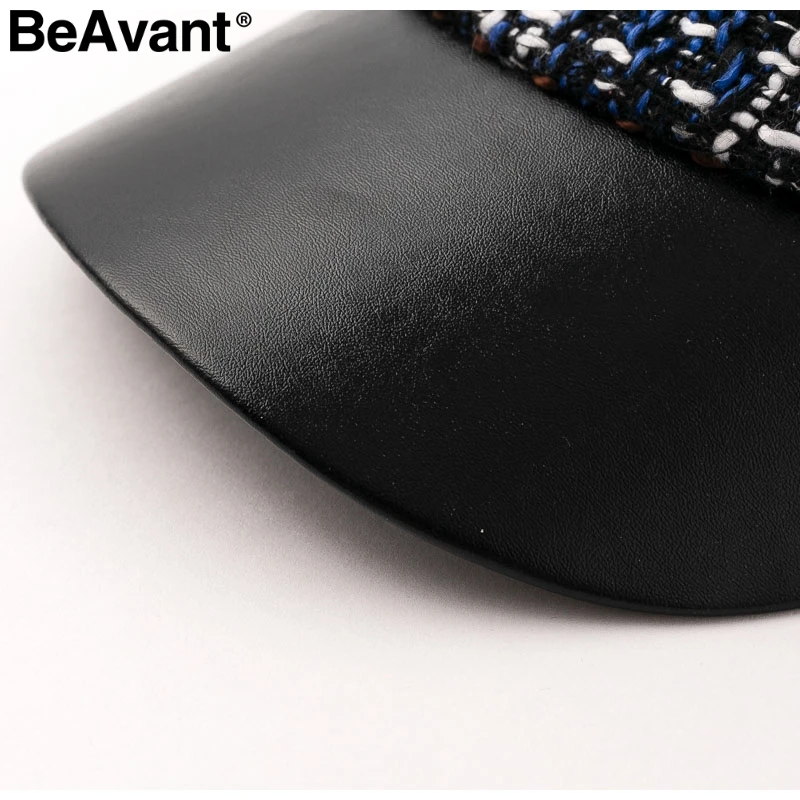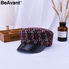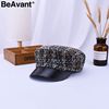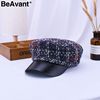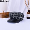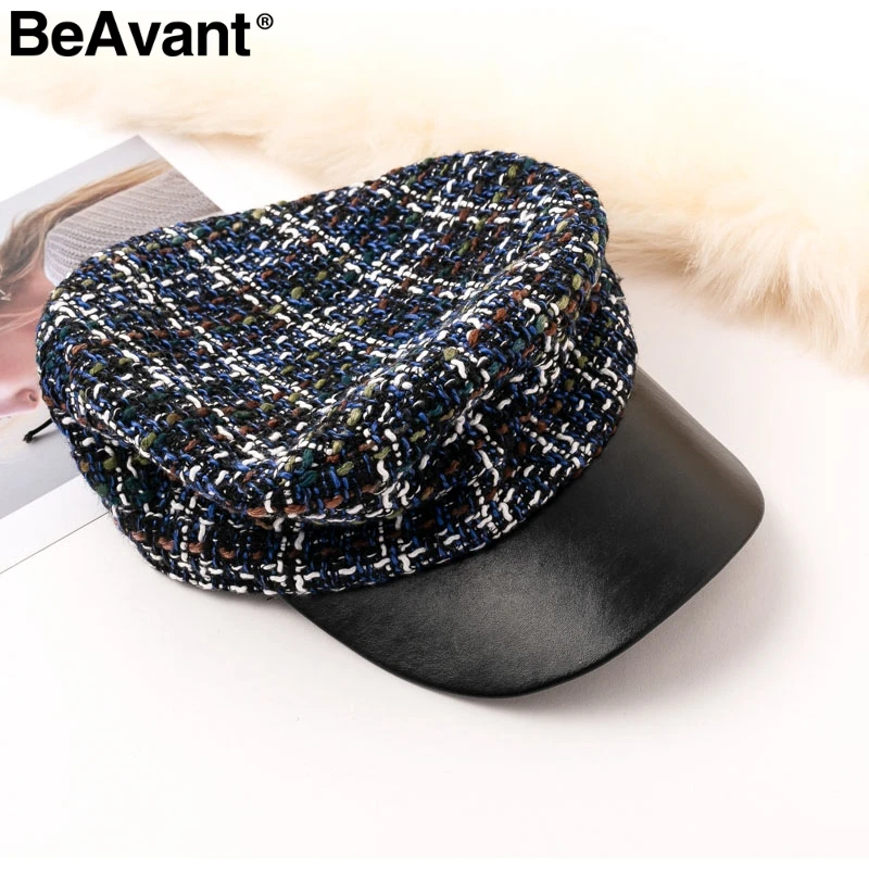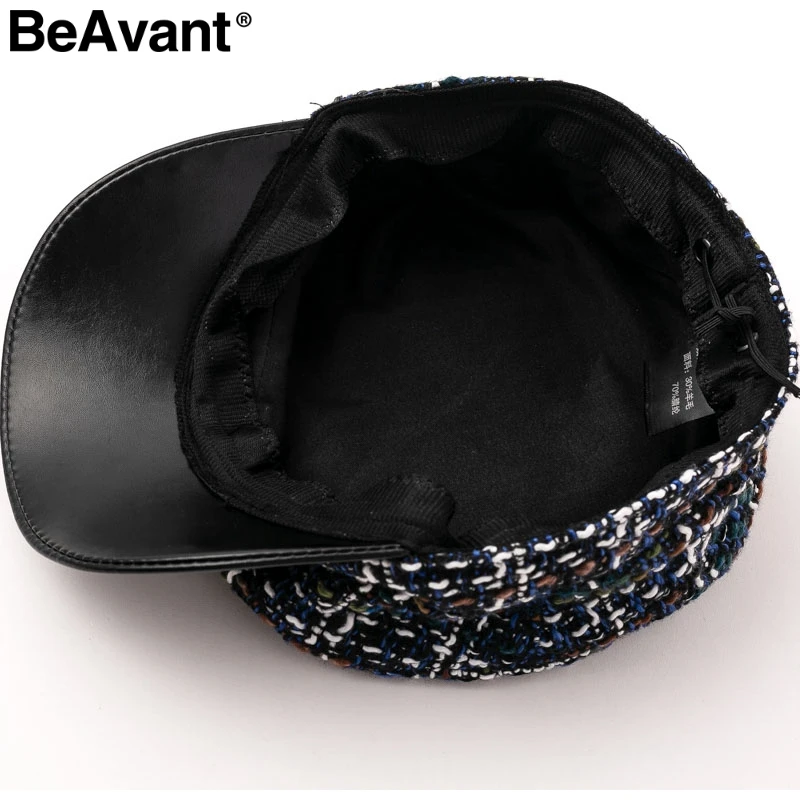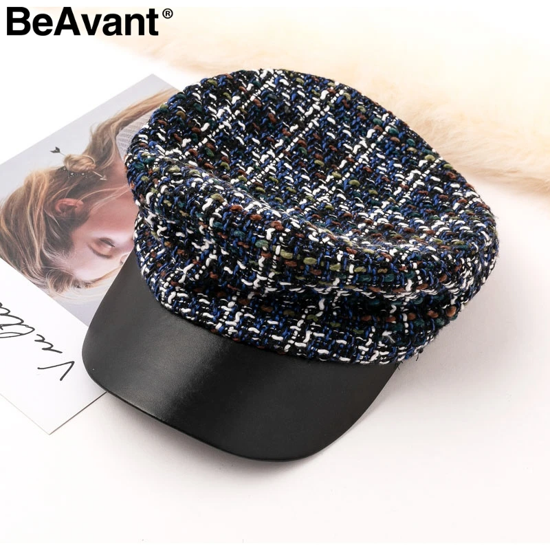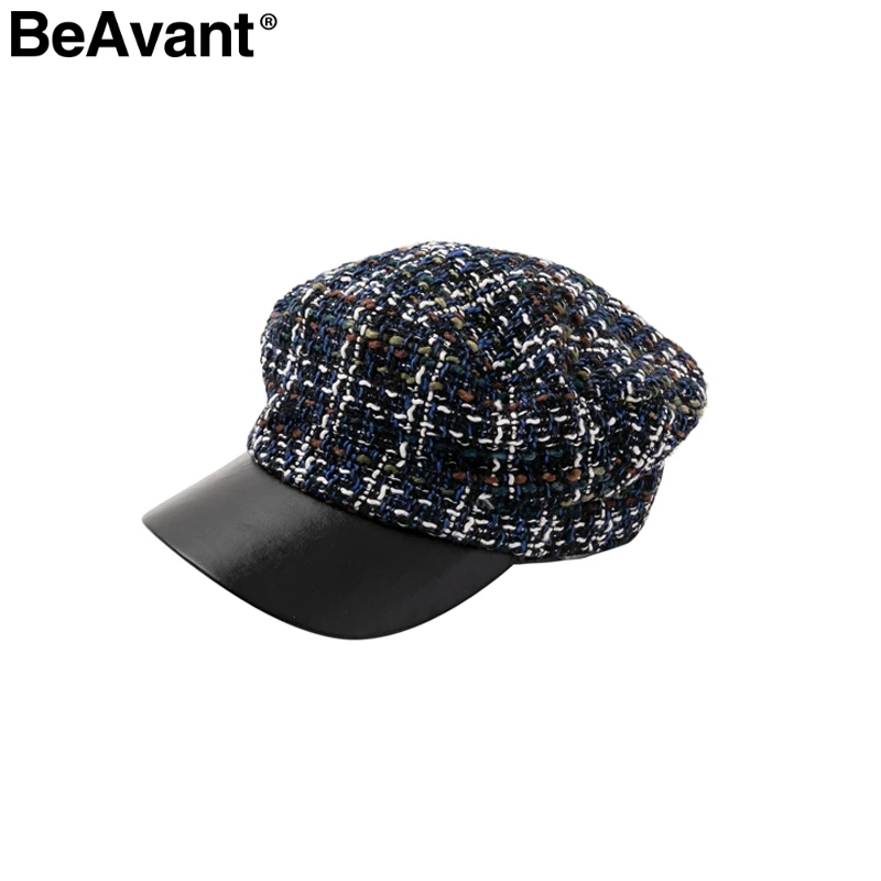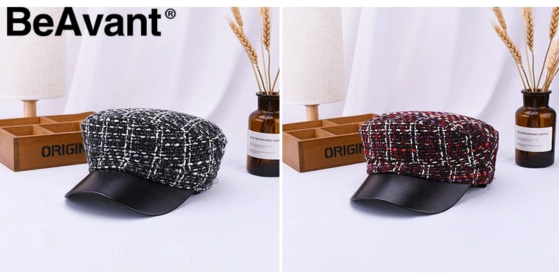 BeAvant Vintage plaid cap women visor hat 2018 New style military tweed winter hat Female casual leather peaked cap casquette