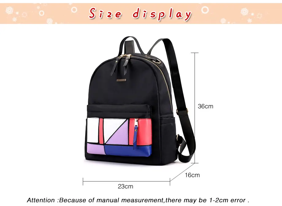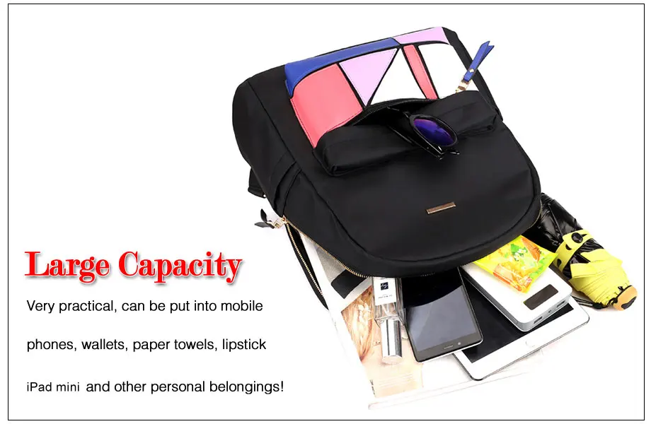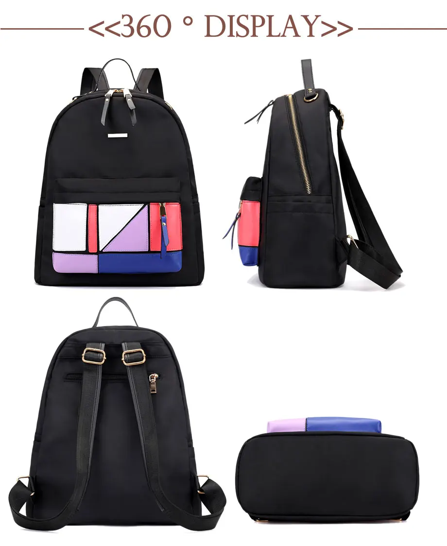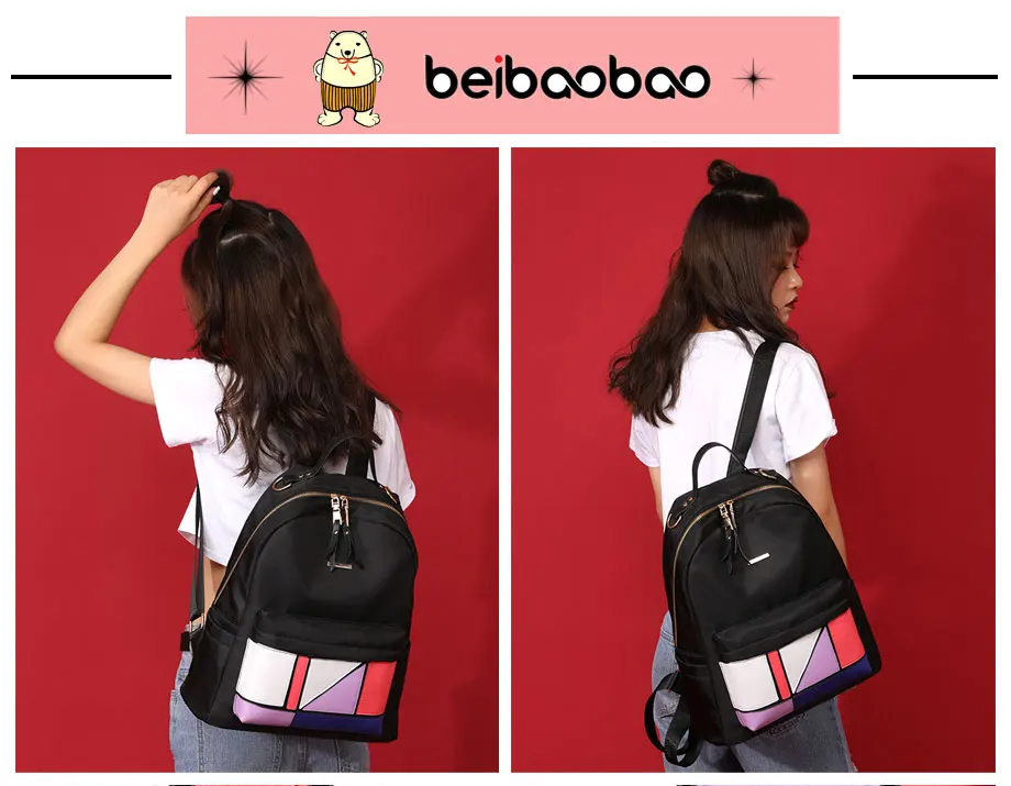 Beibaobao 2018 Casual Backpack Women Black Waterproof Nylon School Bags for Teenage Girls High Quality Fashion Travel Backpack