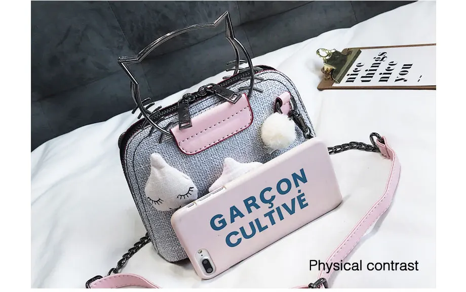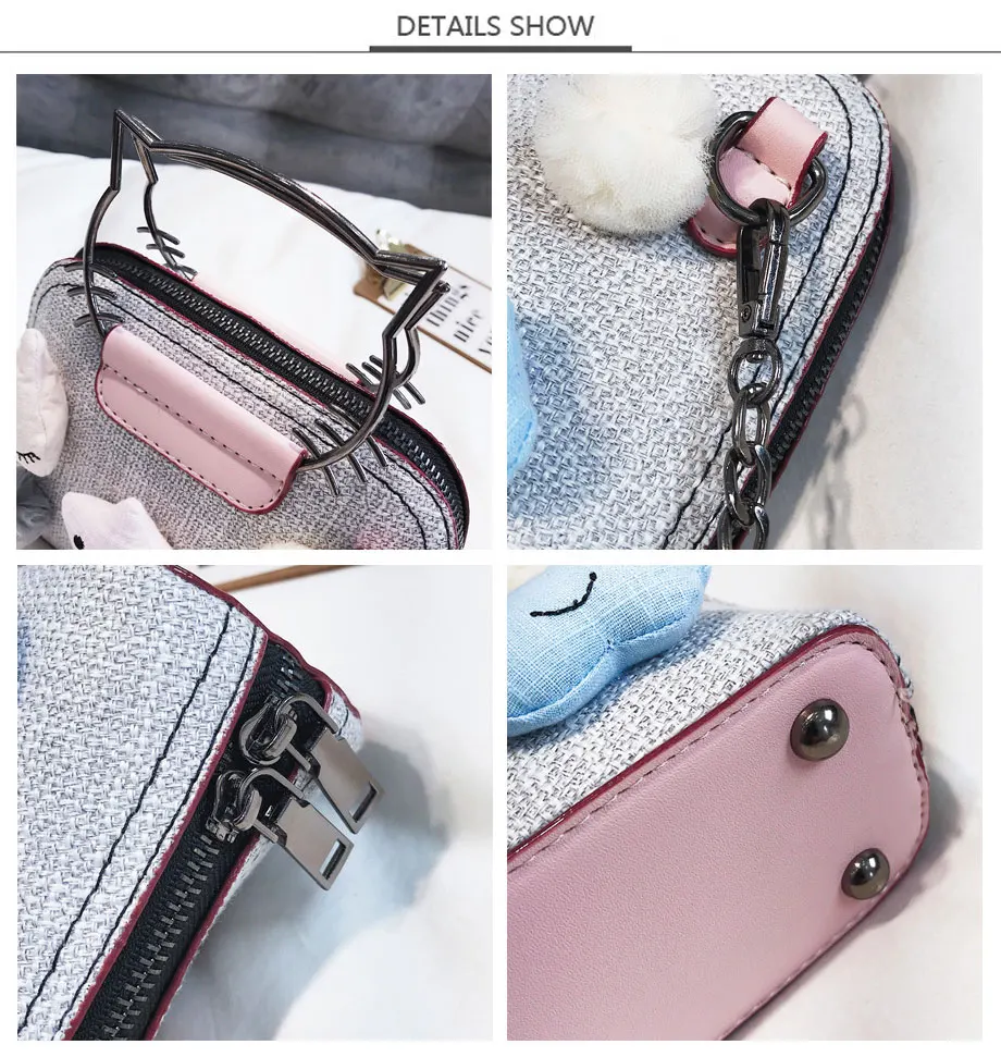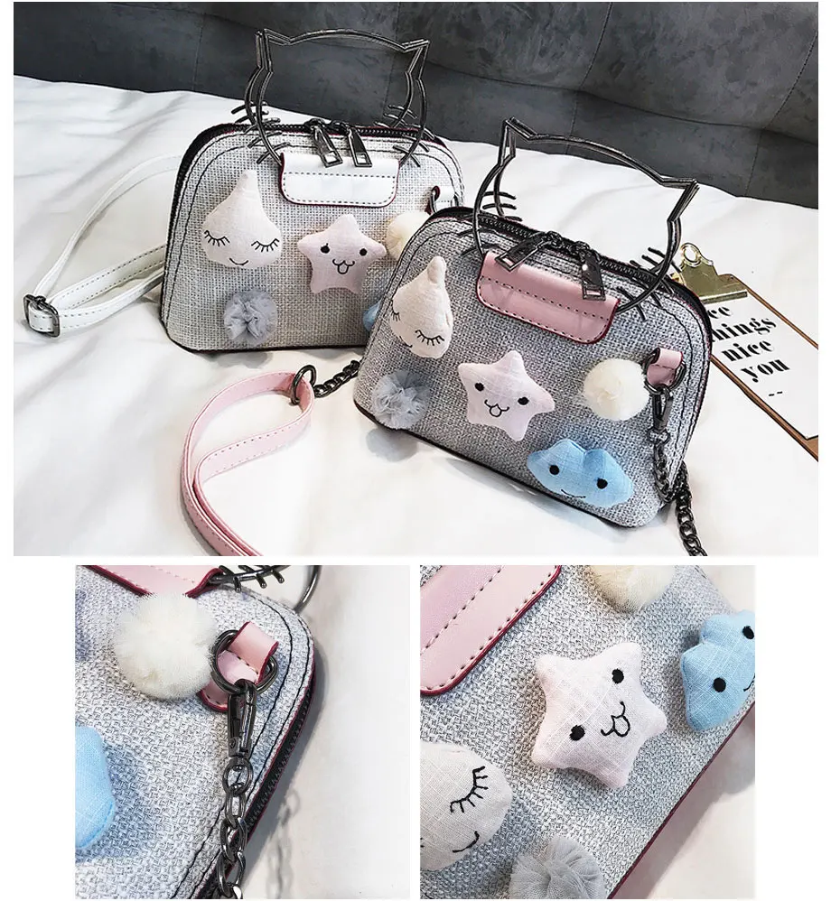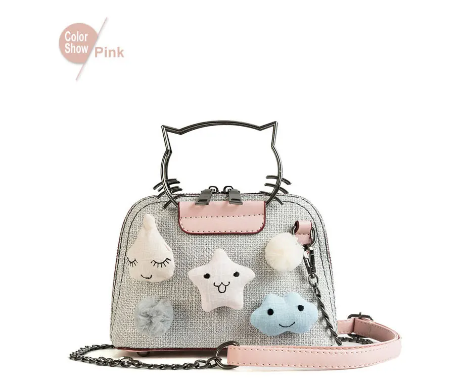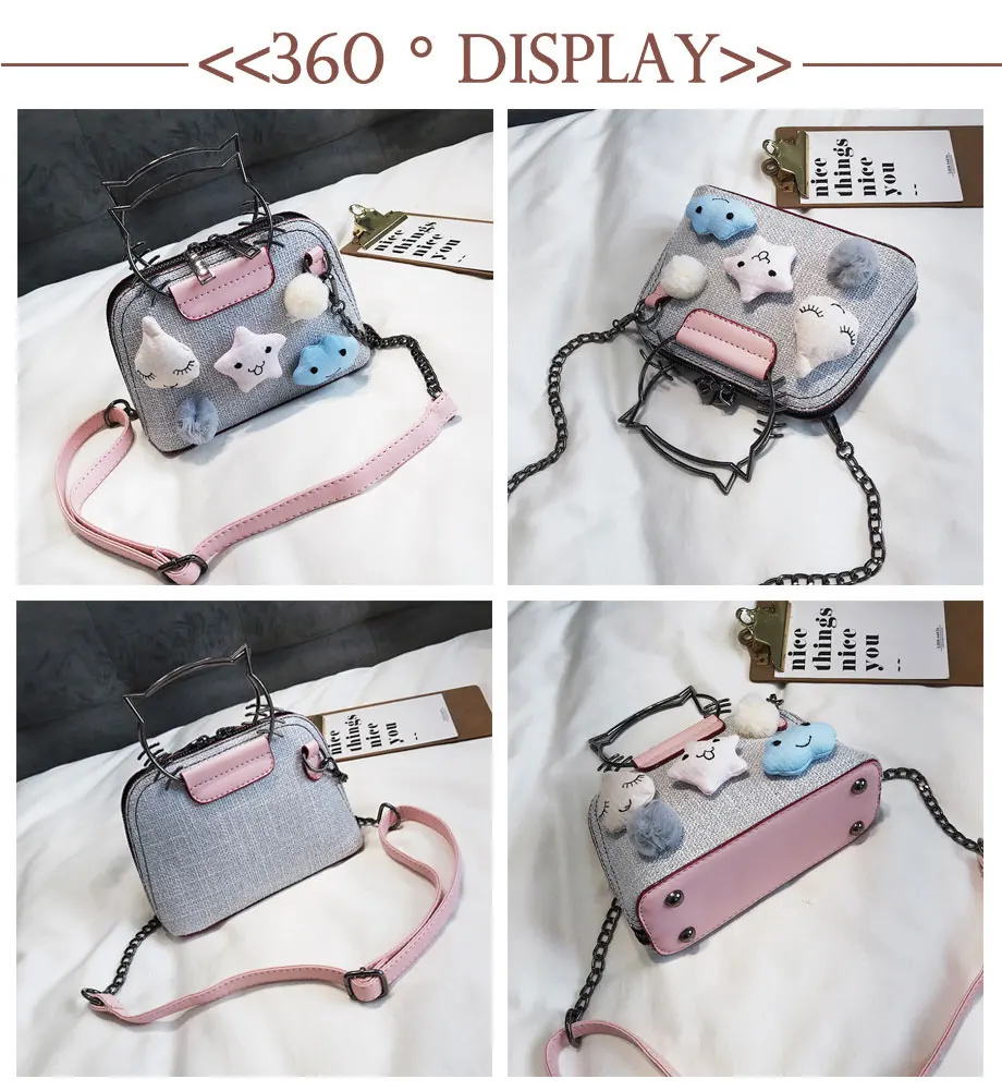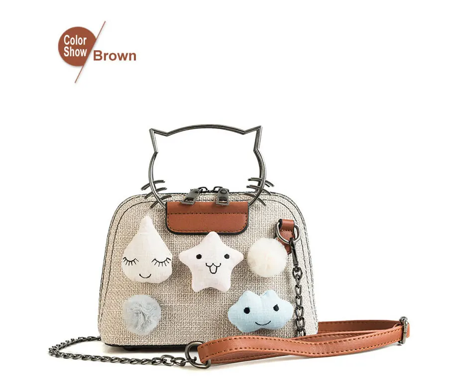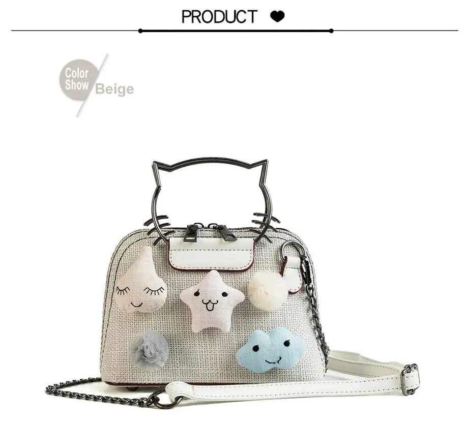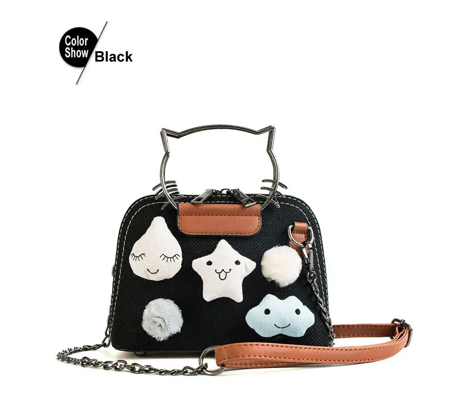 Beibaobao 2018 Women Shoulder Bags Crossbody Handbag Cute Cat Bag Solid Color New Metal Top-handle Bags Fashion Star Decoration