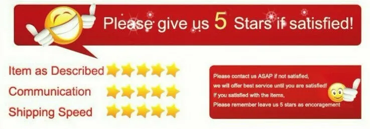 Your satisfaction and positive feedback is very important to us. Please leave positive feedback and 5 stars if you are satisfied with our items and services.