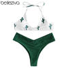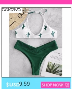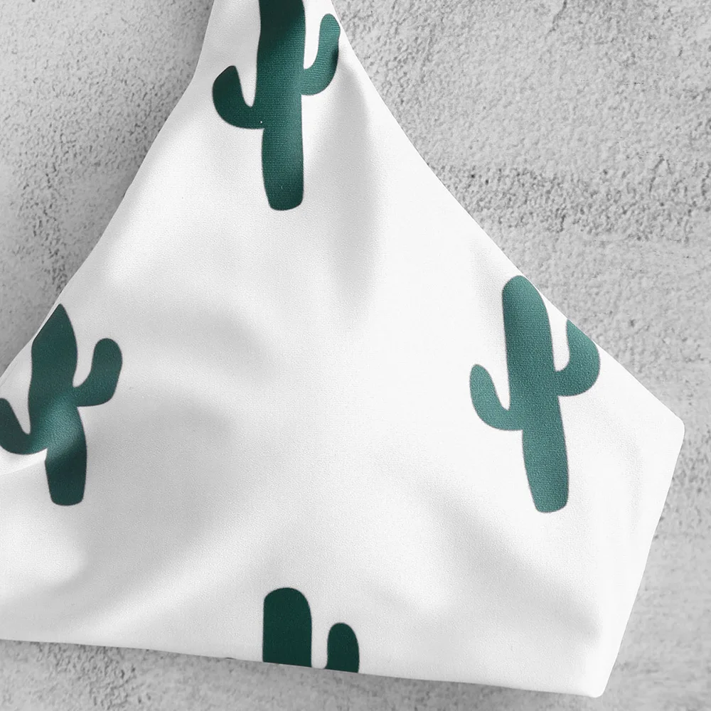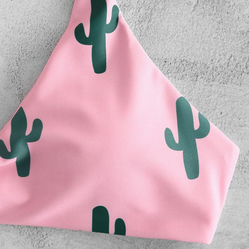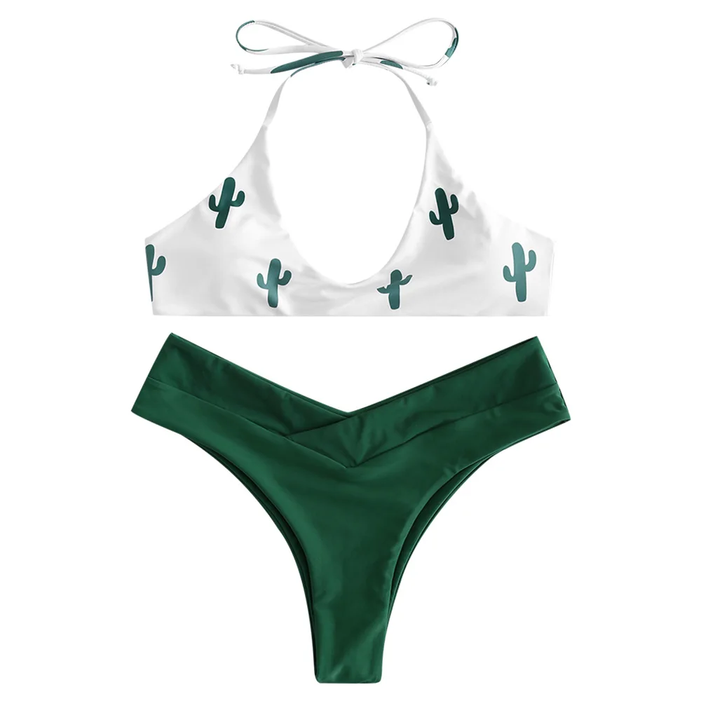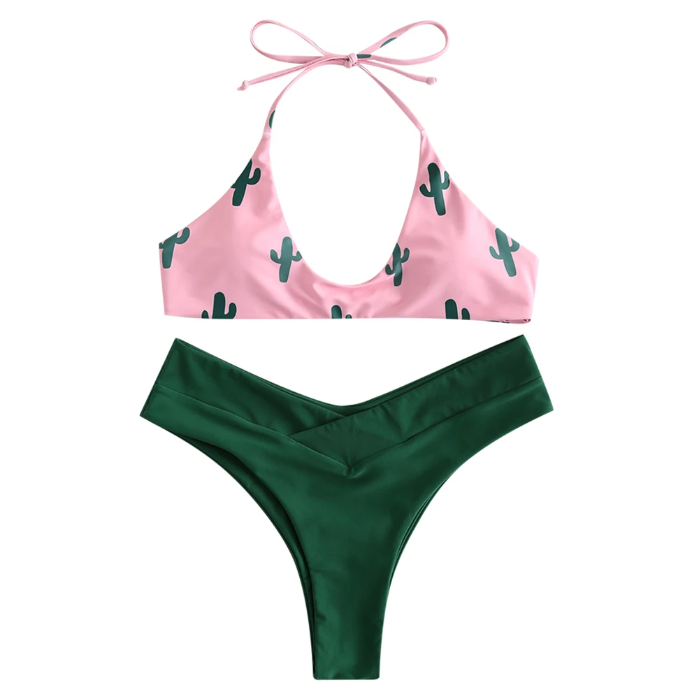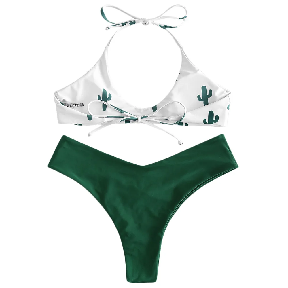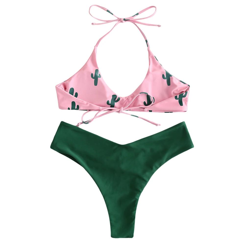 Belleziva Bikini 2018 Cactus Print High Leg Swimwear Women High Waist Bikini Set Bandage Halter Swimsuit Maillot De Bain Femme