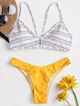 Available in two colors for your choices, this contrasted bikini set covers a halter top with cactus prints and a pair of sleek briefs with super high cut design to elongate the figure. The white one looks simple while the pink shows sweet feelings. Both colors are great for the summer beach!