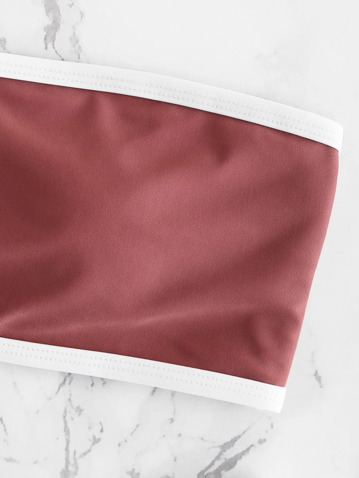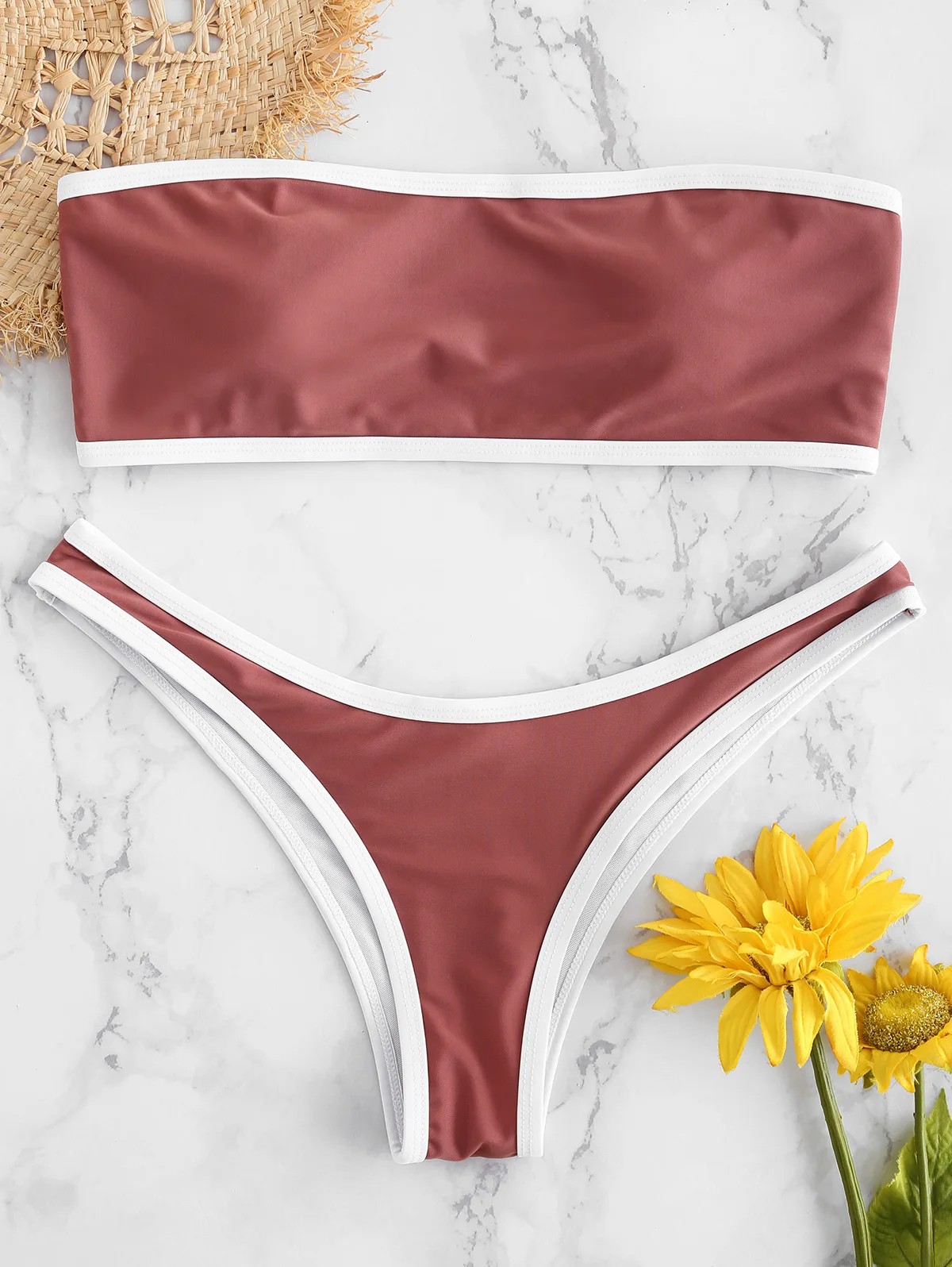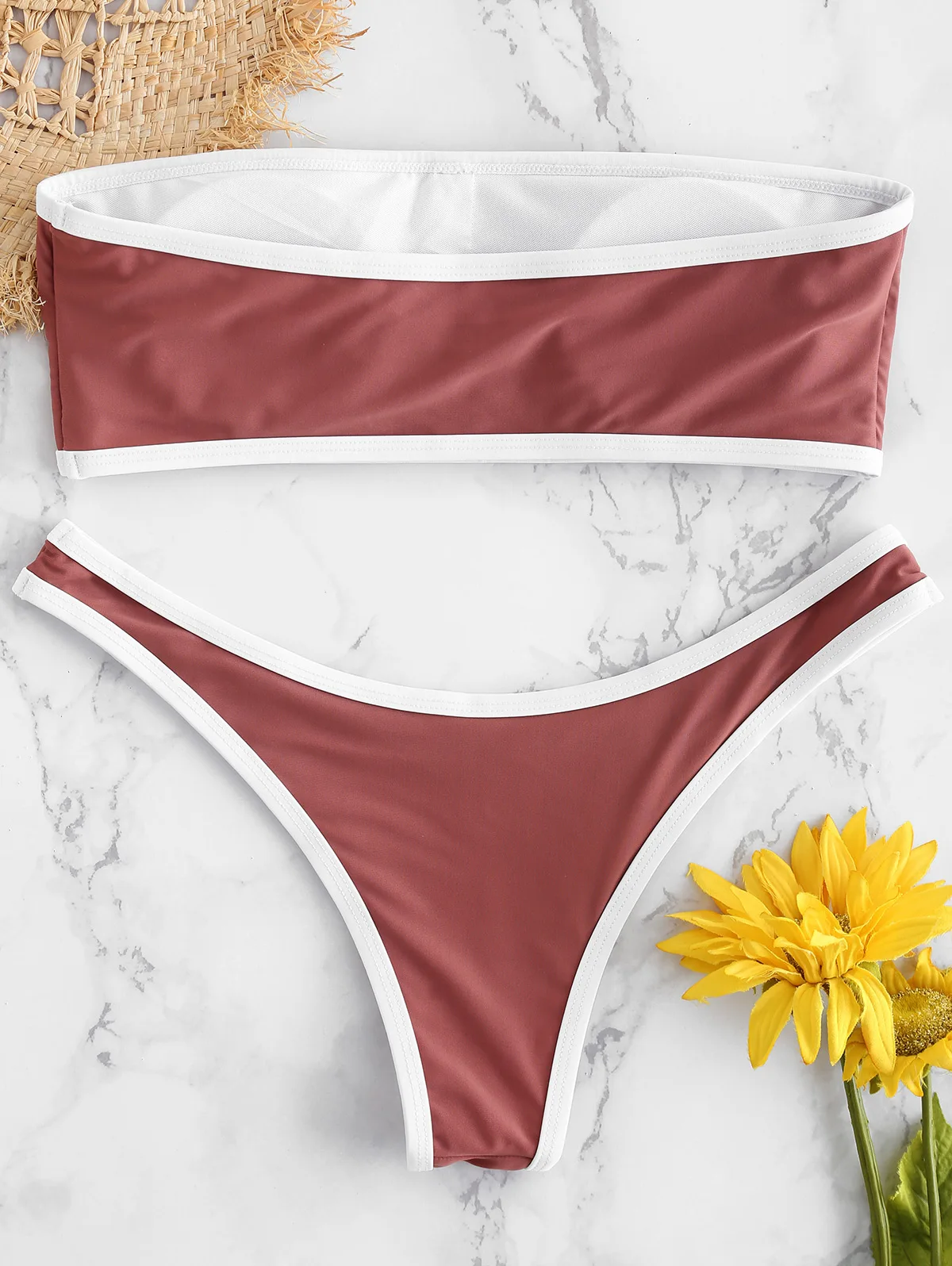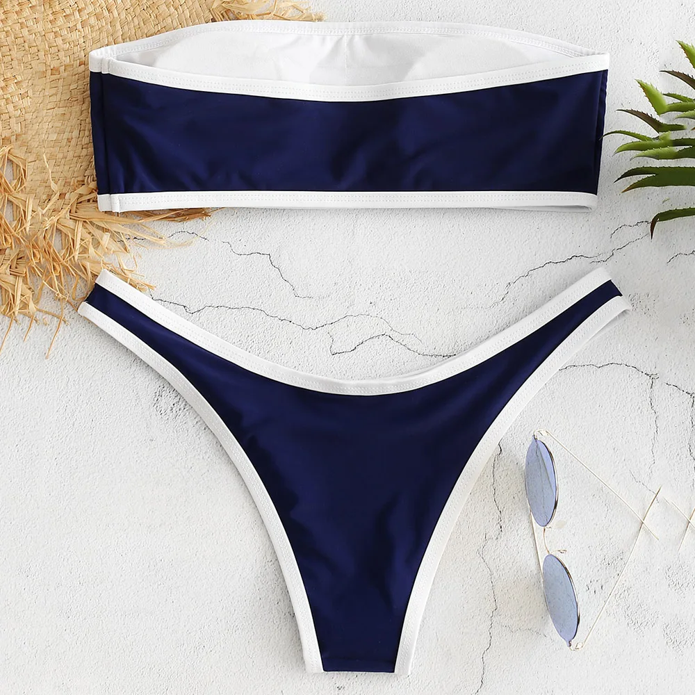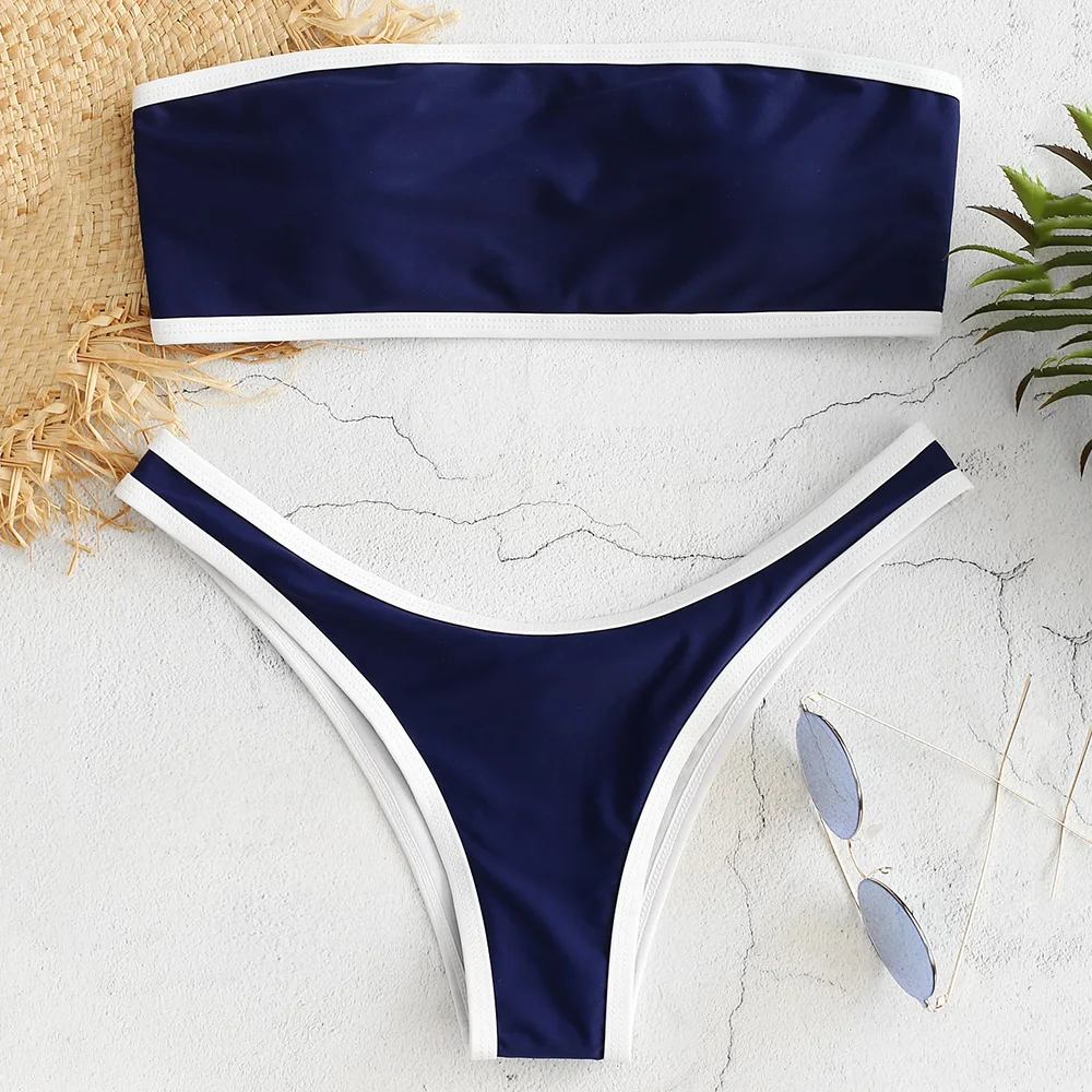 Belleziva Biquini Bandeau Sexy Contrast Trim Padded Bikinis Women Swimsuit Swimwear Female Push Up Bikini 2018 Set Beach Wear
