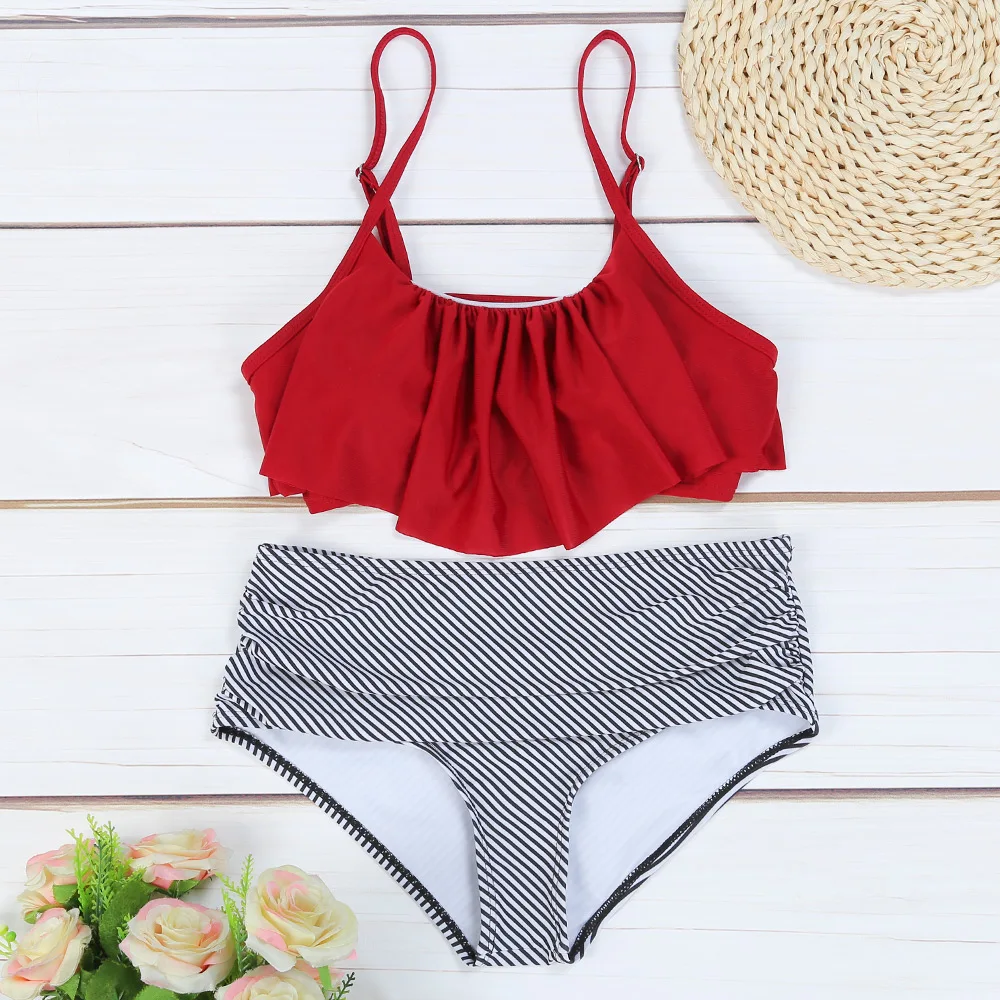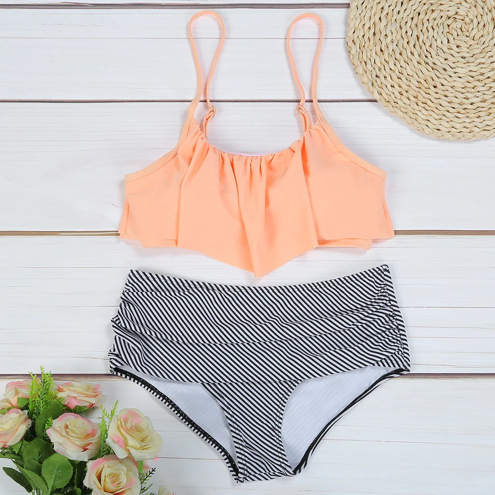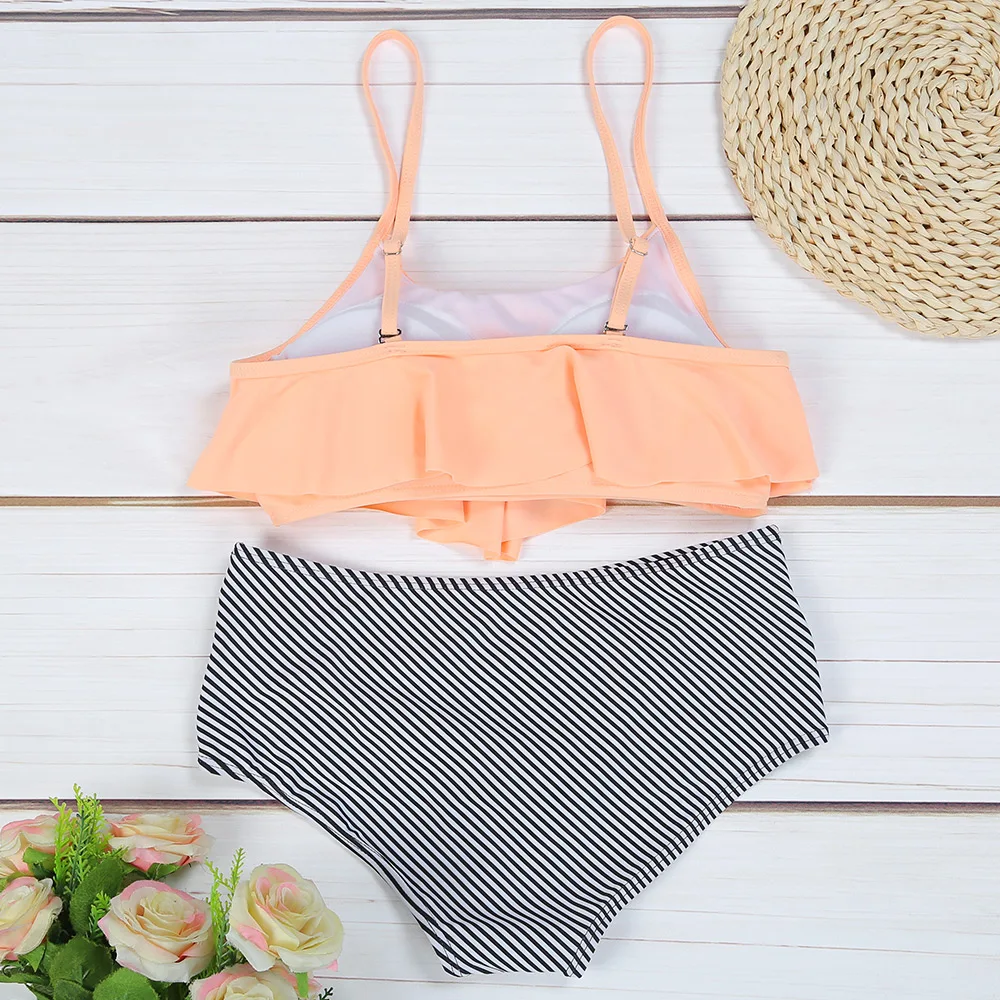 Belleziva High Waist Bikini Flounced Striped Swimwear Women Two-Piece Swimsuit Ruffle Beachwear Female Bikini Set Bathing Suit