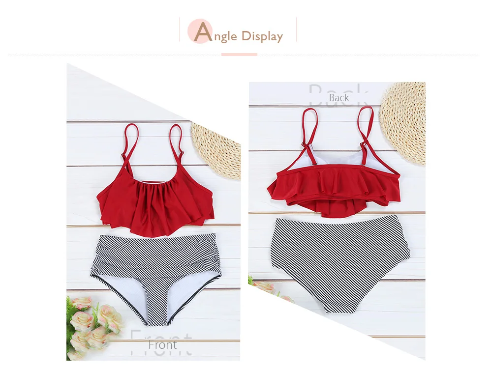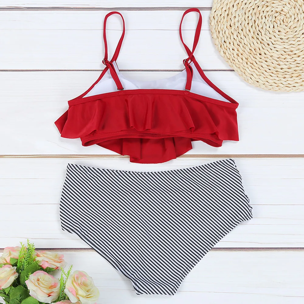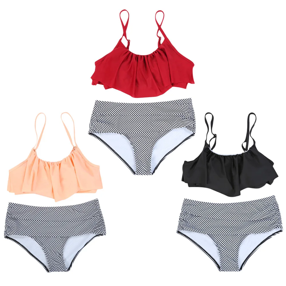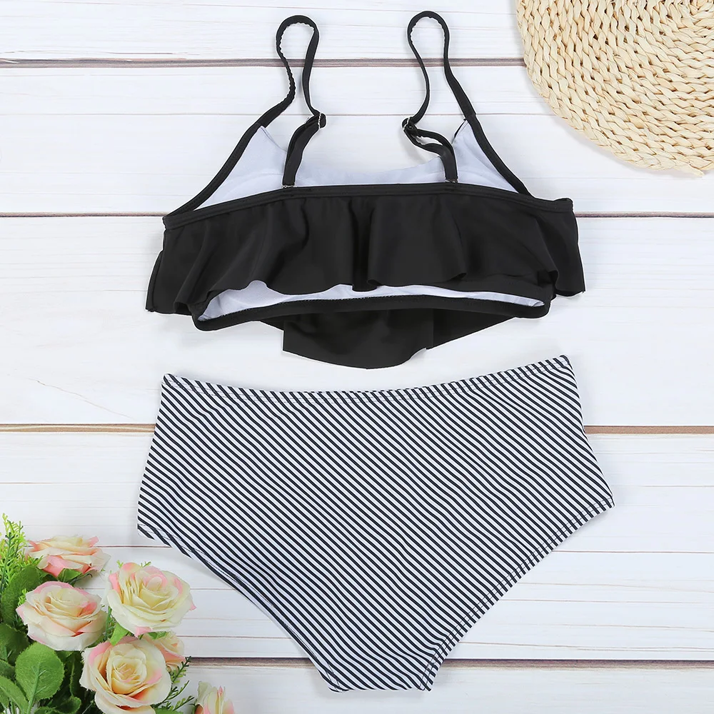 Belleziva High Waist Bikini Flounced Striped Swimwear Women Two-Piece Swimsuit Ruffle Beachwear Female Bikini Set Bathing Suit