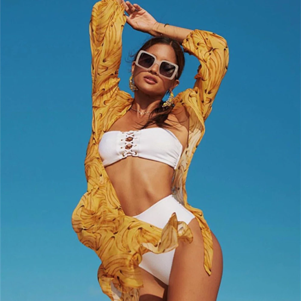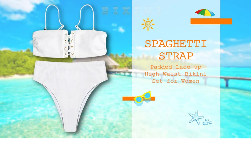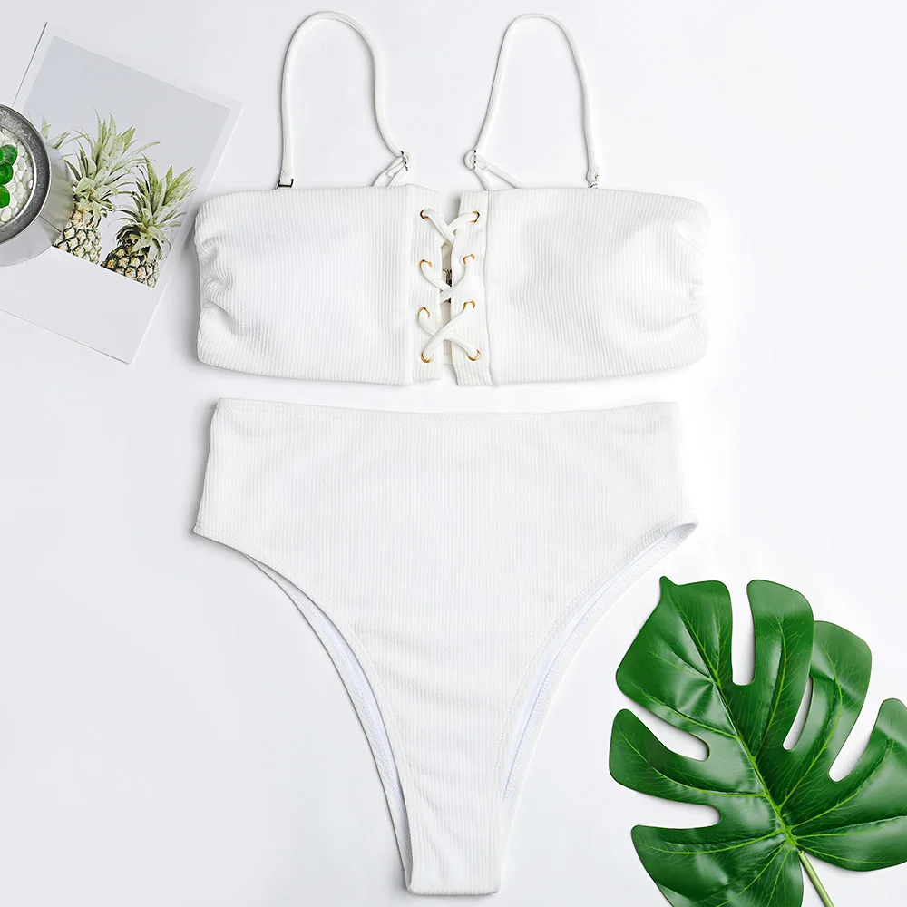 Belleziva New Lace-Up High Waist Women Bikini Set Sexy Bandeau Swimwear Female Beach Swimsuit Bathing Suit Push Up Biquinis