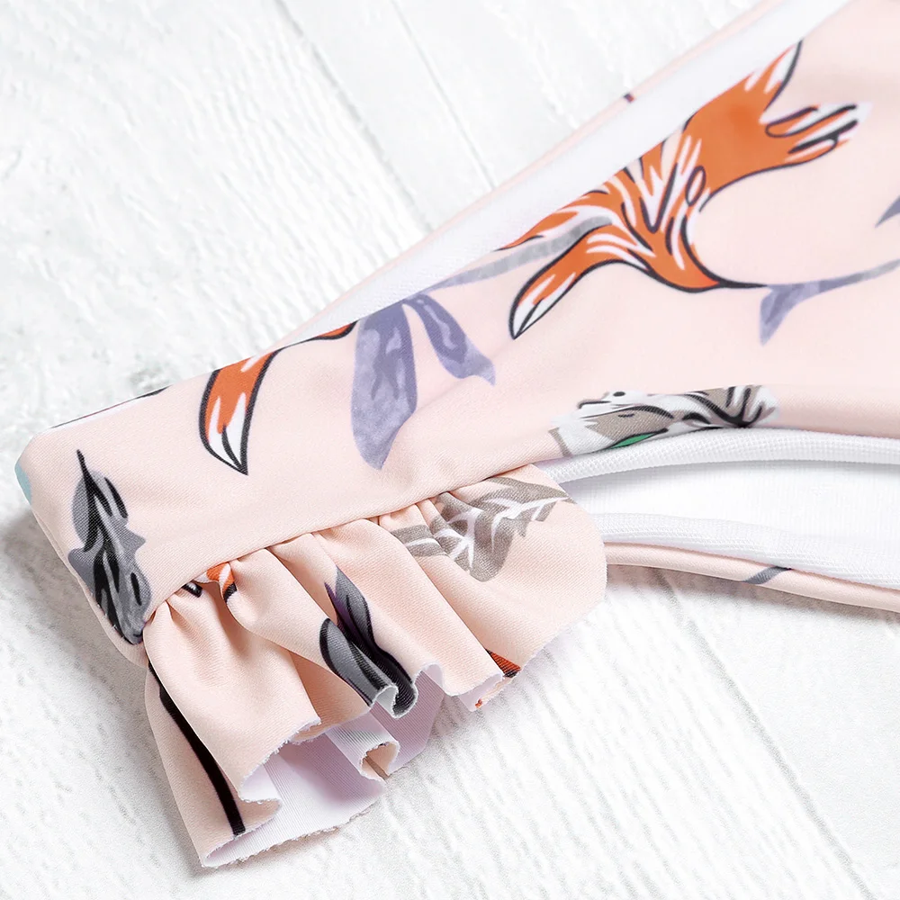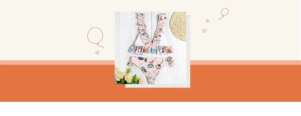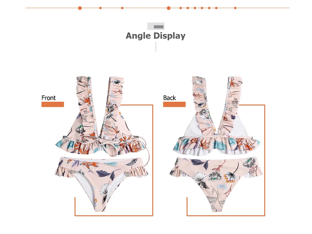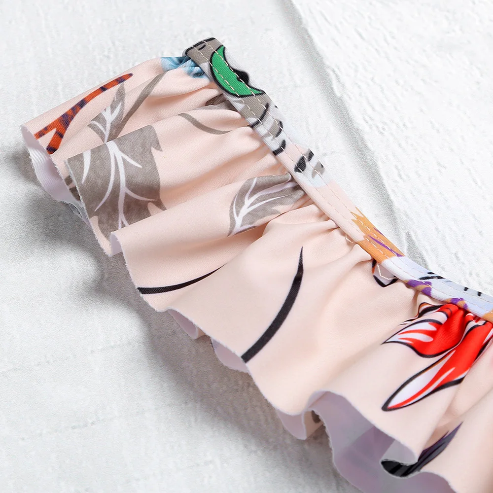Belleziva Plunge Neck Backless Padded Ruffle Floral Print Women Bikini Set Vintage Swimsuit Female Swimwear Biquini Bathing Suit
