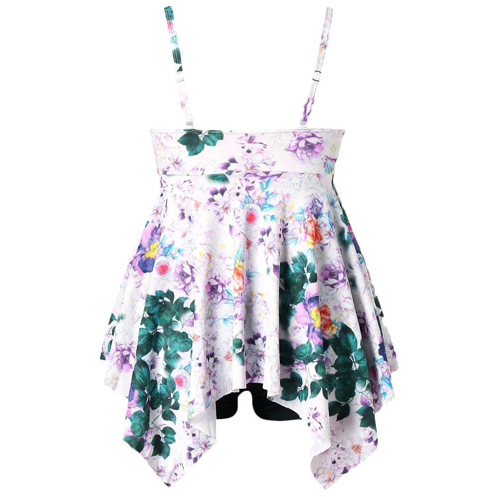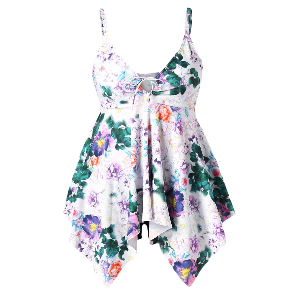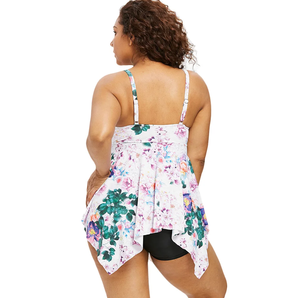 Belleziva Plus Size Floral Handkerchief Women Tankini Set Swimsuit 2pcs Swimwear Large Size Female Beach Bathing Suit L-5XL
