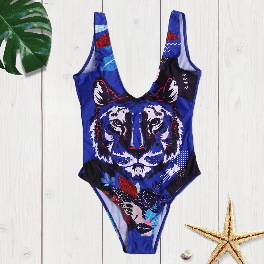 Belleziva Sexy One Piece Swimsuit Women Push Up Tiger 3D Print Swimwear High Cut Low Back Swimsuit Beach Bathing Suit Monokinis