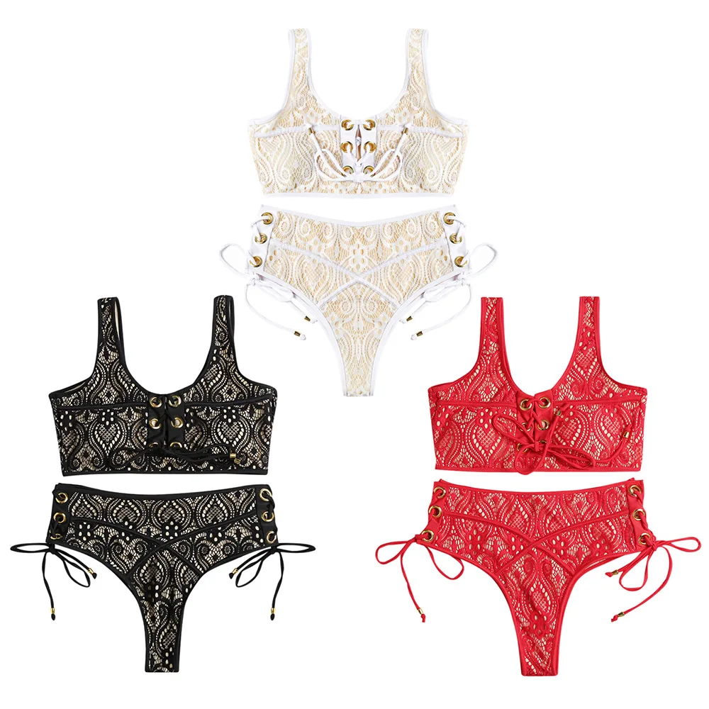 The sexy lace bikini shows your sweet and feminine side.