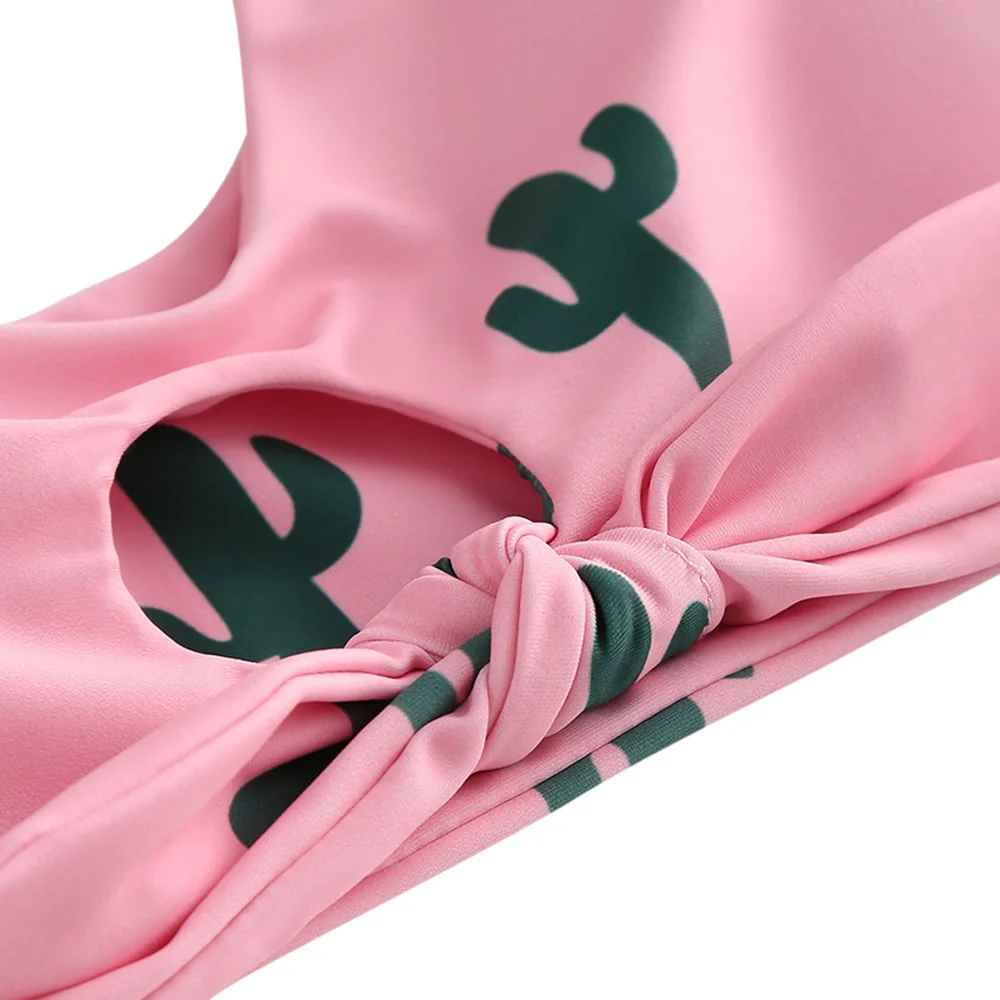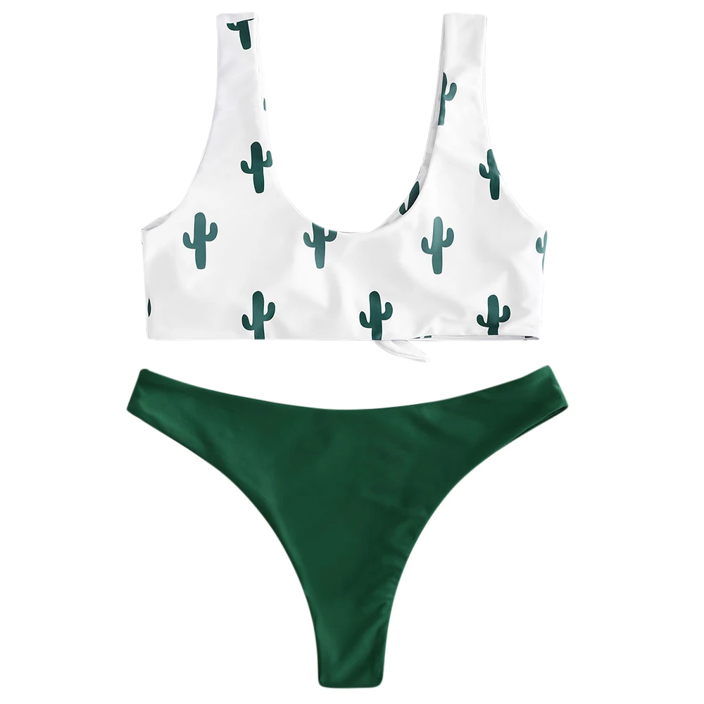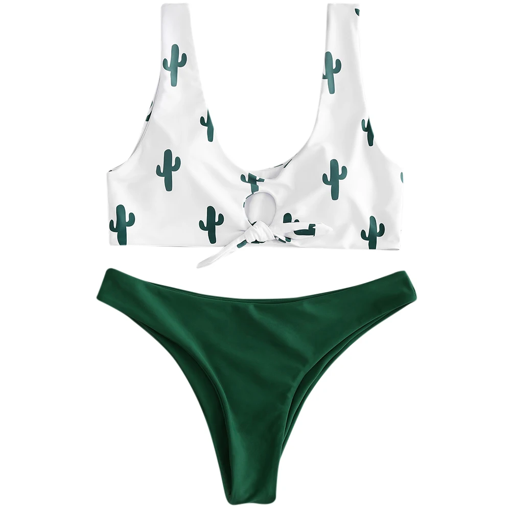 Belleziva Swimwear Women Cactus Print Knot Bikini Set Push Up Swimsuit Swimwear Bikini 2018 Beach Wear Bathing Suit Biquini