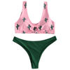 Take this contrast bikini and make a splash on the beach, you will remember this trip forever! The plunging bikini top is styled with cactus pattern all over and a knotted tie on the front. Matching with a pair of solid cheeky briefs to complete the look. And the wide shoulder straps can offer comfortable support all the beach time.