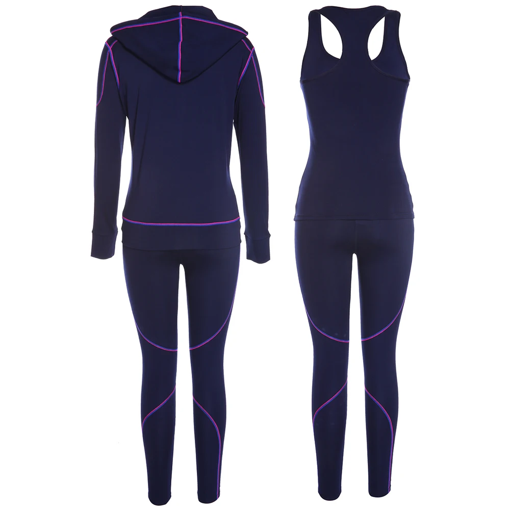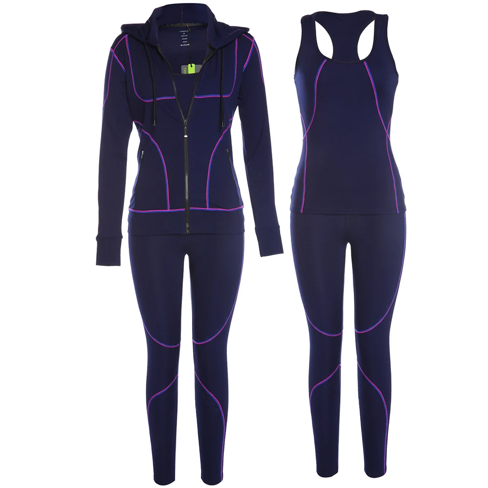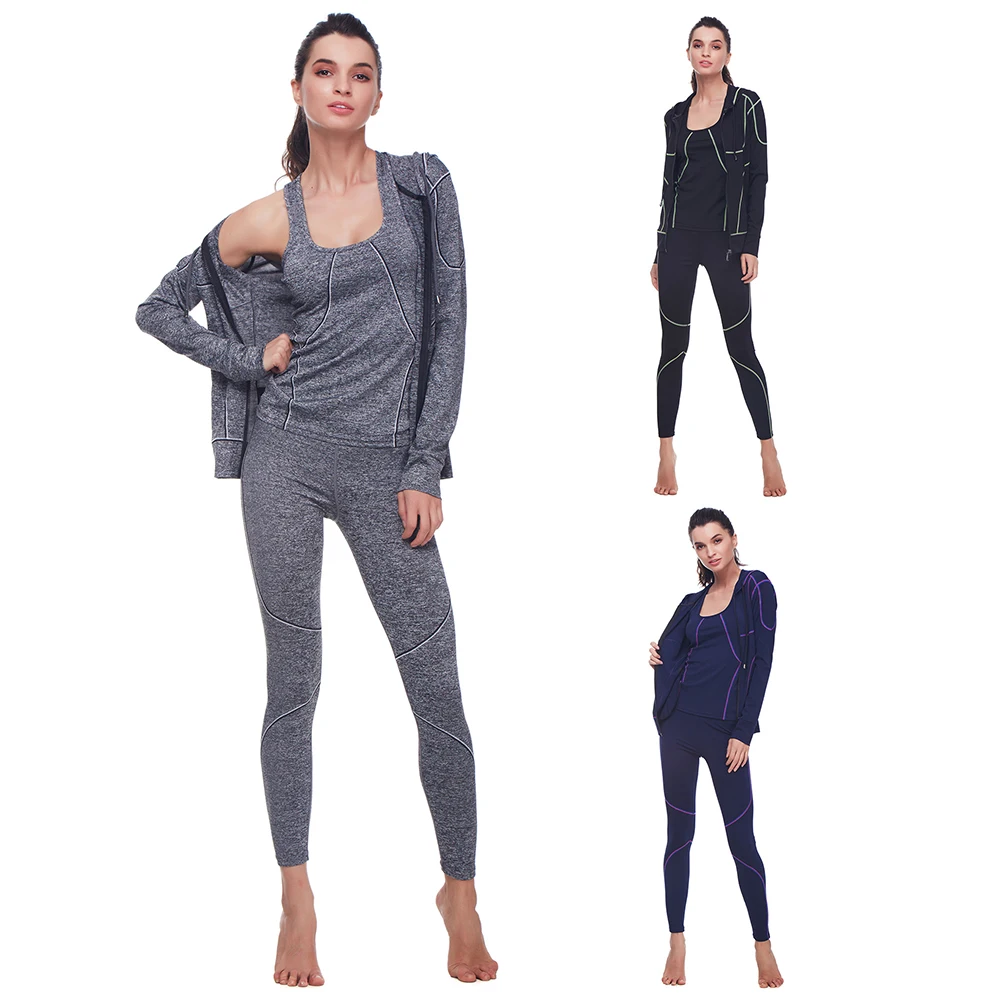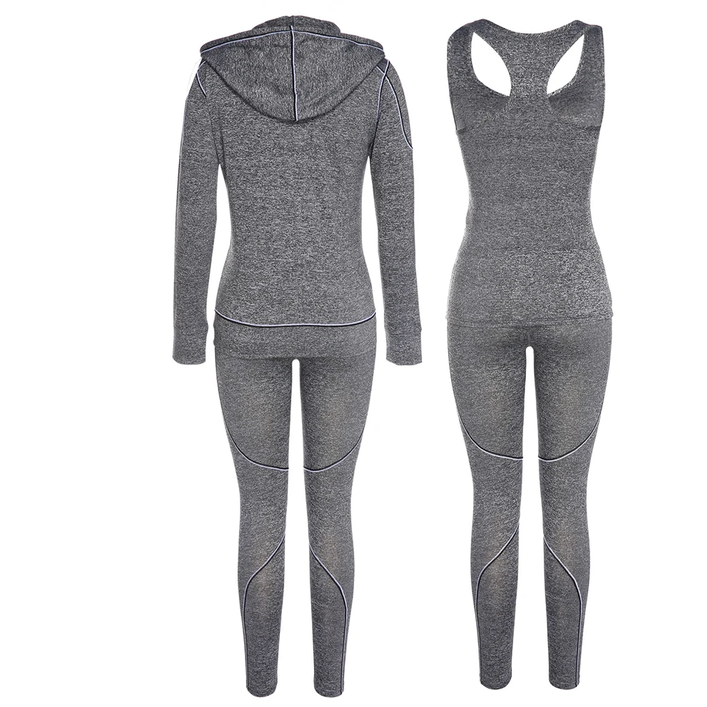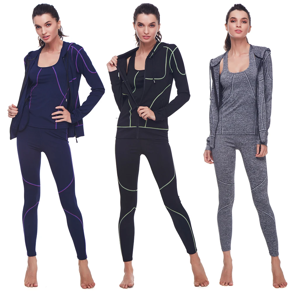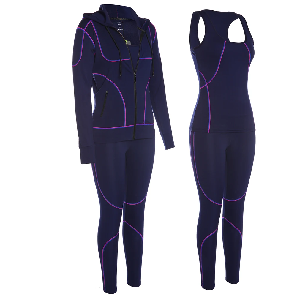 Belleziva Winter Women Hoodie Sport Suits 3 PCS Fitness Yoga Set Sportswear Training Running Tights Striped Gym Jogging Clothes