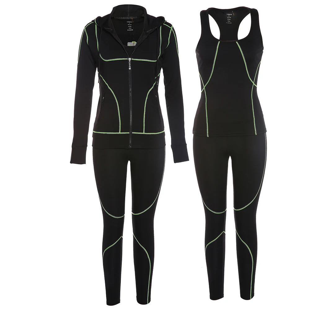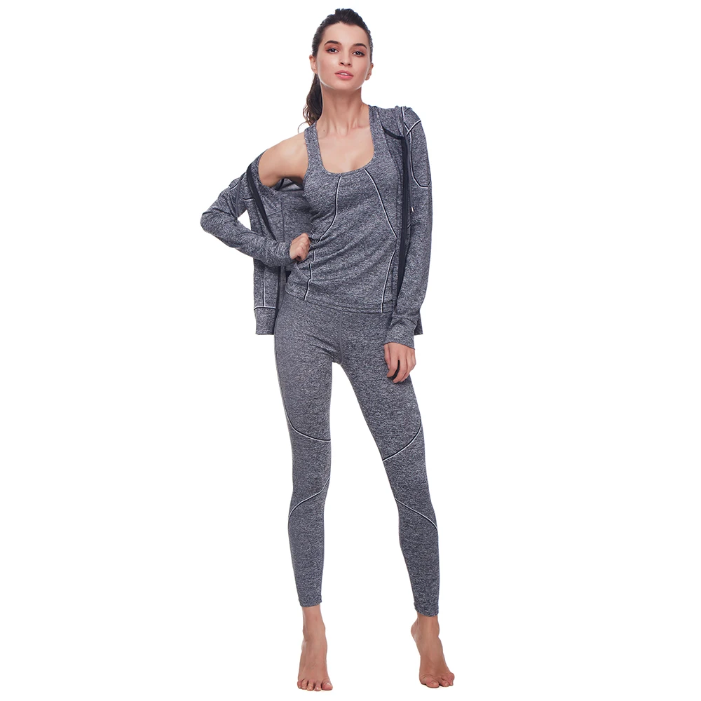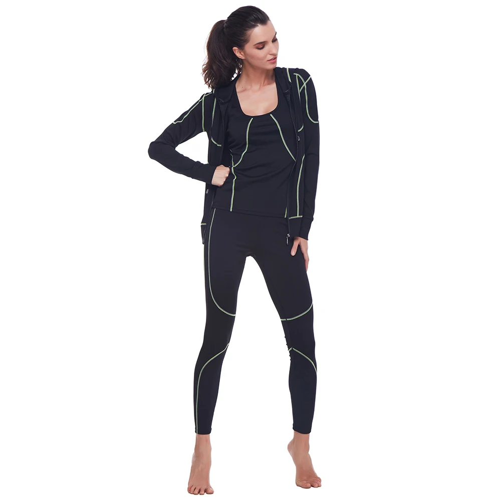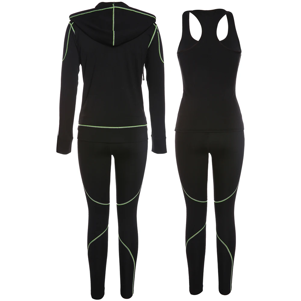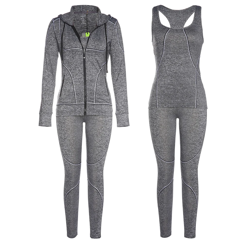 Belleziva Winter Women Hoodie Sport Suits 3 PCS Fitness Yoga Set Sportswear Training Running Tights Striped Gym Jogging Clothes