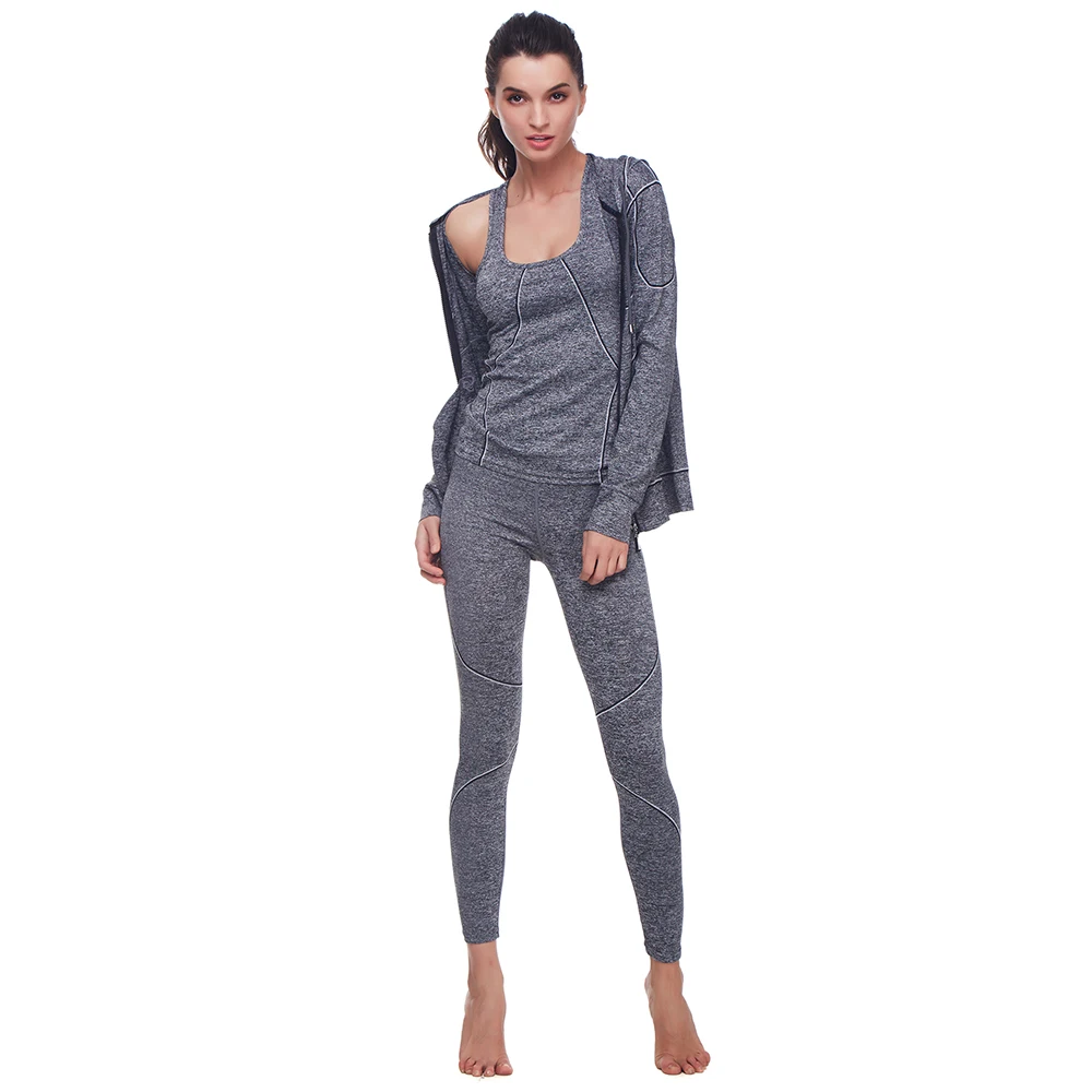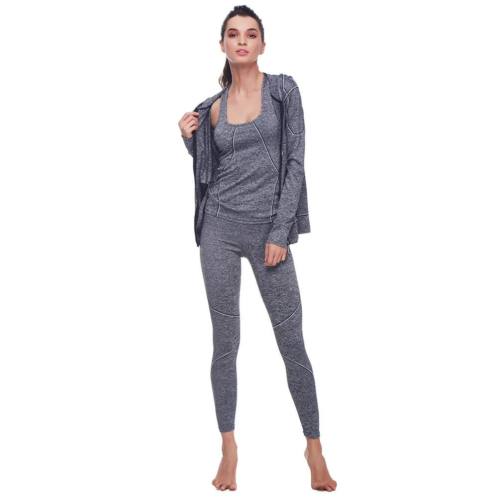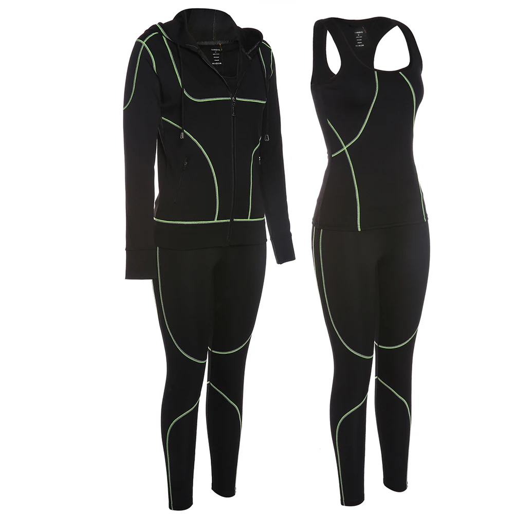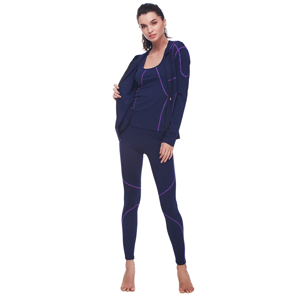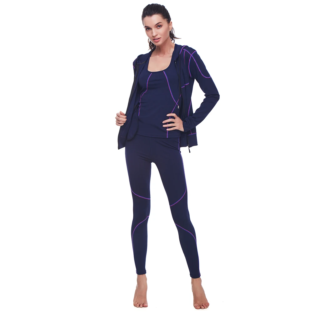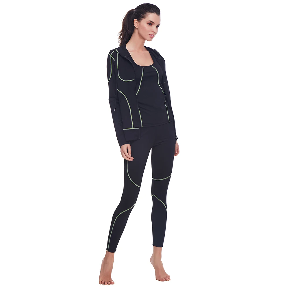 Belleziva Winter Women Hoodie Sport Suits 3 PCS Fitness Yoga Set Sportswear Training Running Tights Striped Gym Jogging Clothes