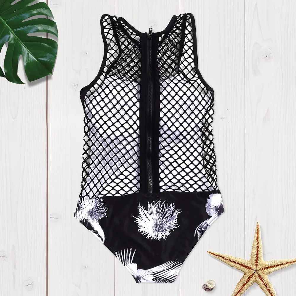 Description: one-piece swimsuitSleek and elegant Features: *see-through mesh lets you enough sexy *Floral Print adds the fashion and charming sense *High cut leg detailing women swimwear *Padded cups improve the shape of the breast. *Neat stitching and good workmanship