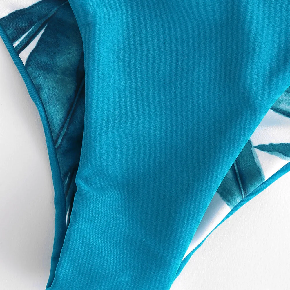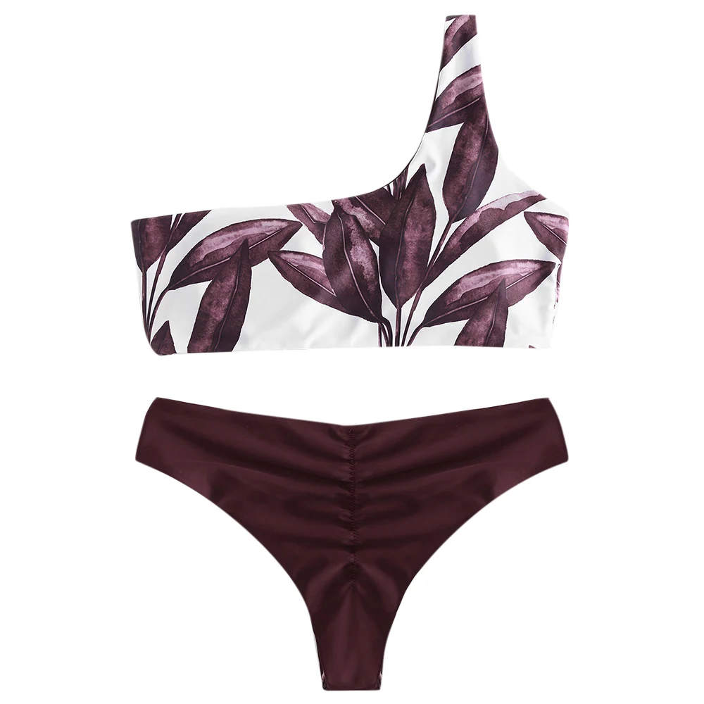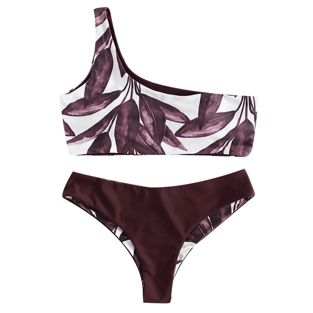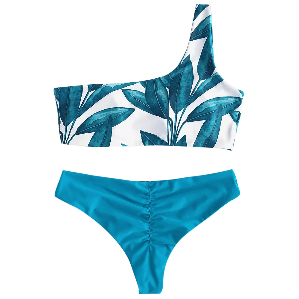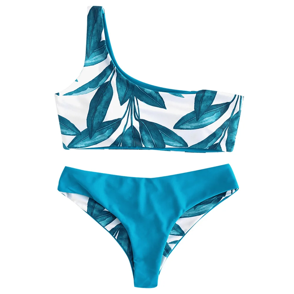 Belleziva Women New One Shoulder Leaves Print Bikini Sexy Low Waisted Swimwear Swimsuit Summer Beach Bikini 2018 Biquini