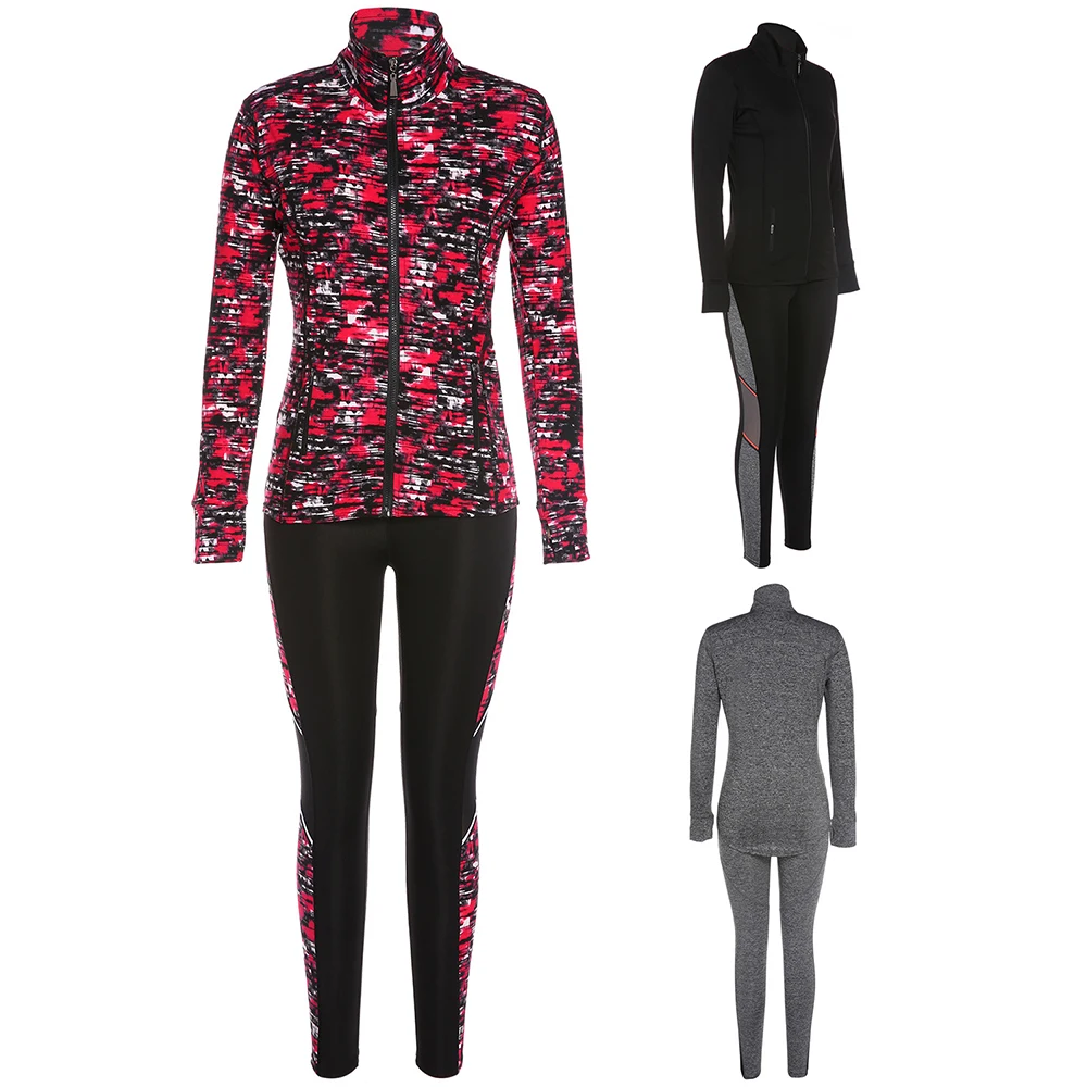 Belleziva Women Zip Up Coat 2 Piece Jogging Track Skinny Sport Suit Fitness Running Sets Female Outdoor Wear Workout Tracksuits