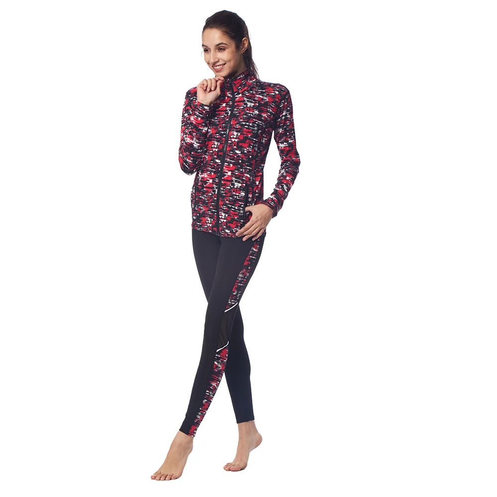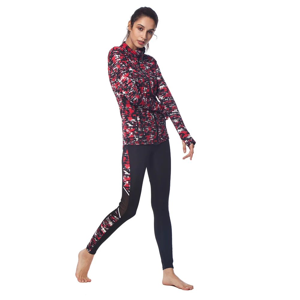 The characteristic interesting Zip up sport suit design, combined with see-through mesh bright color stripe style, sufficient elastic force, it’s exciting