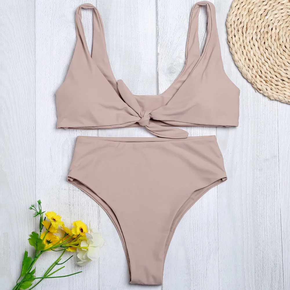 Bellezive Bowknot Solid Color Women Bikini Set Sexy High Waist Swimsuit Female Bathing Suit Swimwear Maillot De Bain Femme