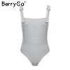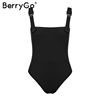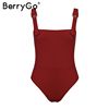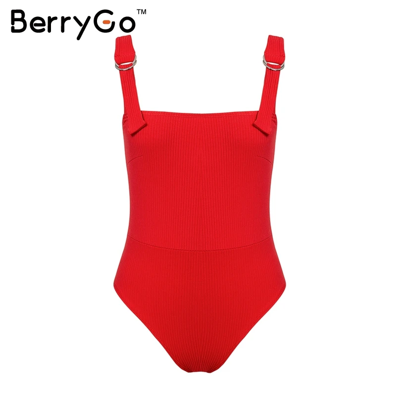 BerryGo Adjustable red strap backless knitted jumpsuit Women black sexy bodysuit Slim skinny tight undershirt playsuit romper