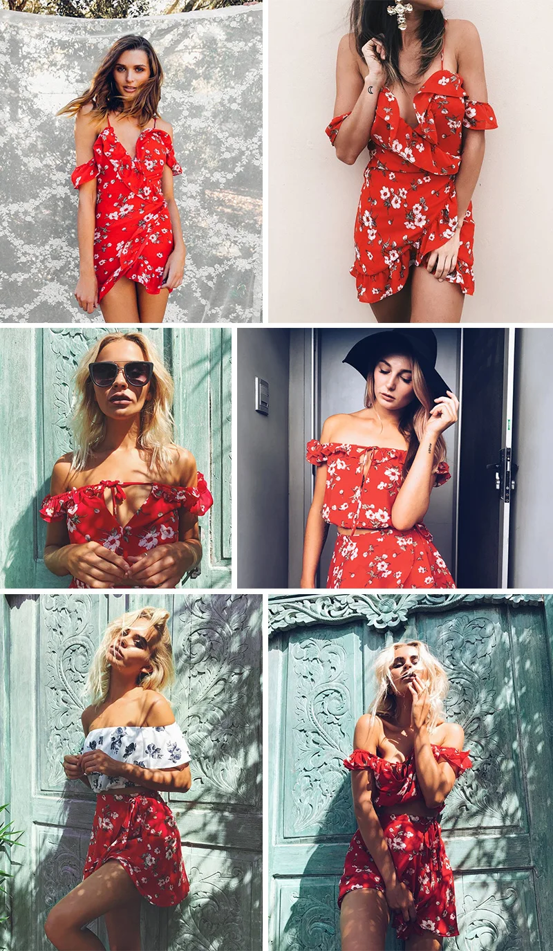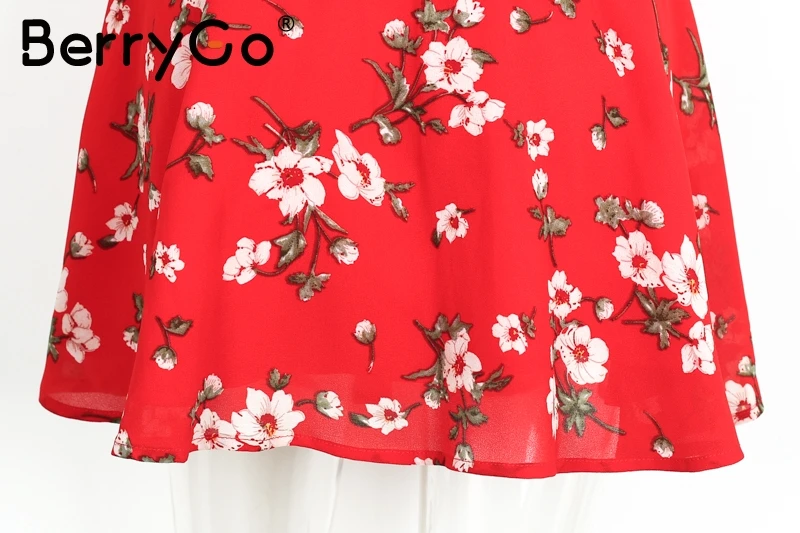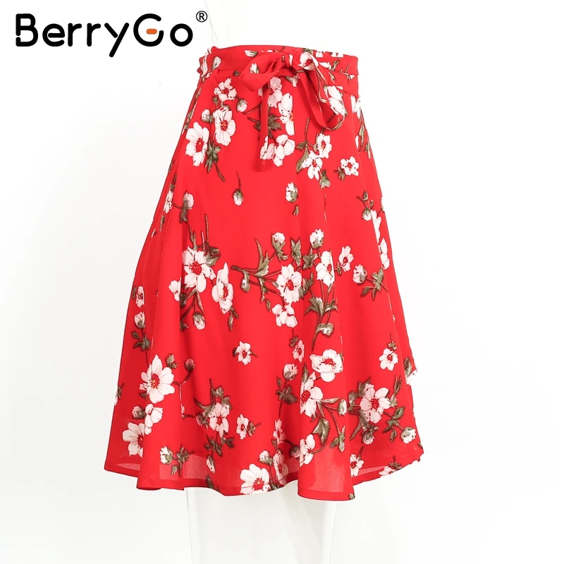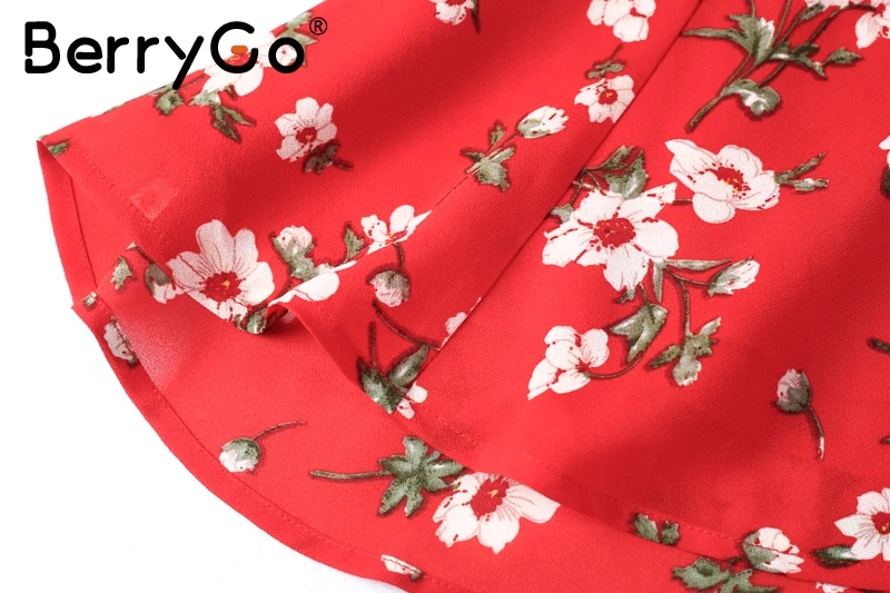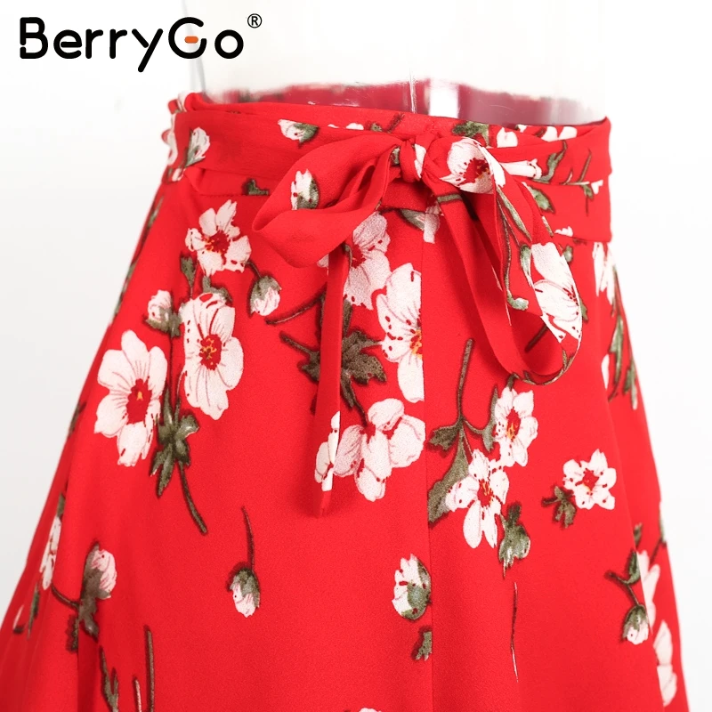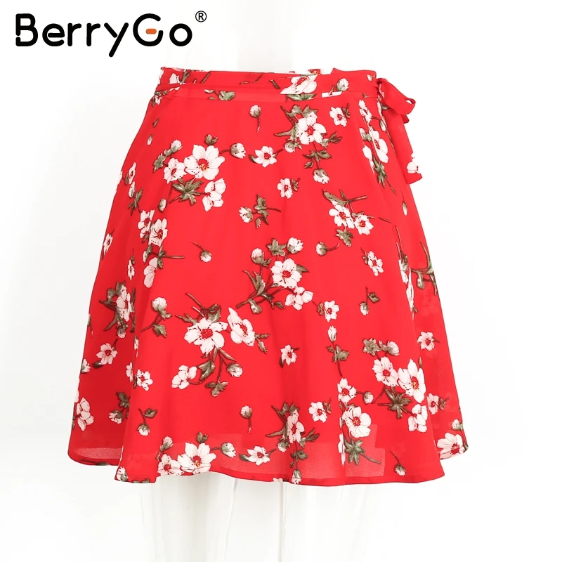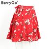 BerryGo Boho red print chiffon skirts women Vintage party ruffles short skirt Casual high waist summer skirt female