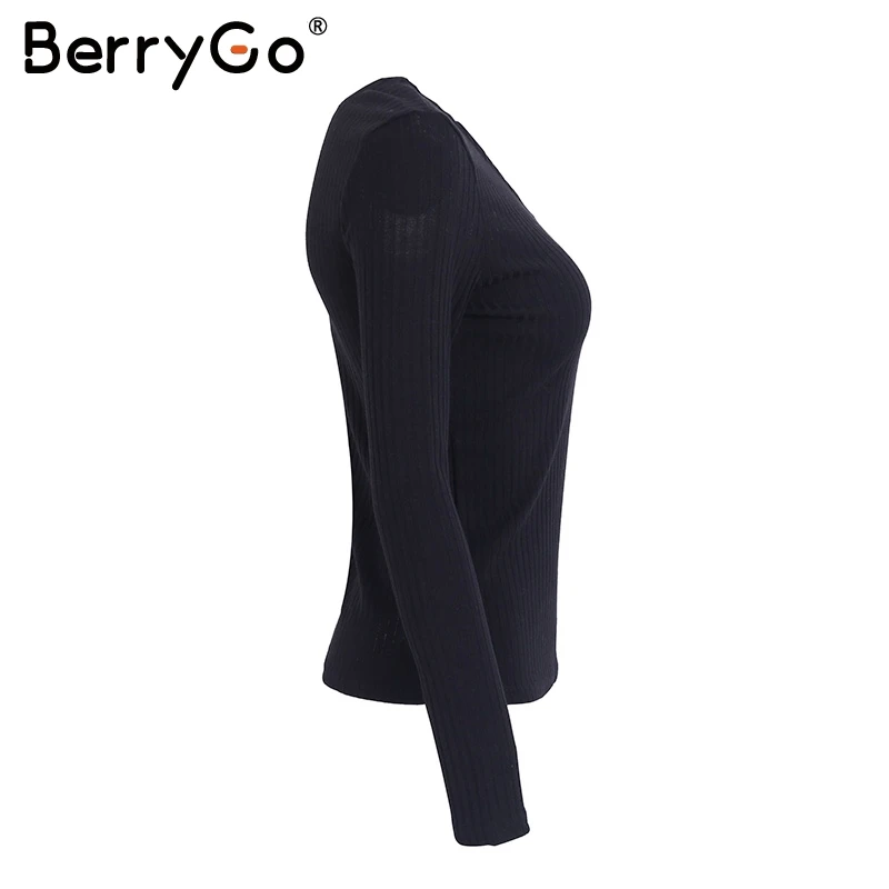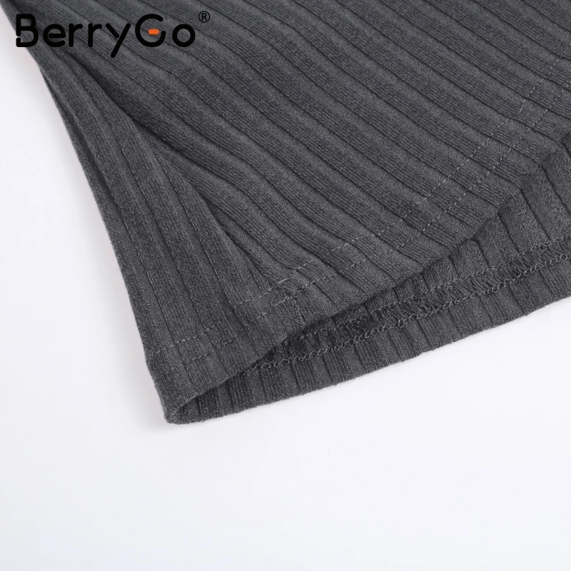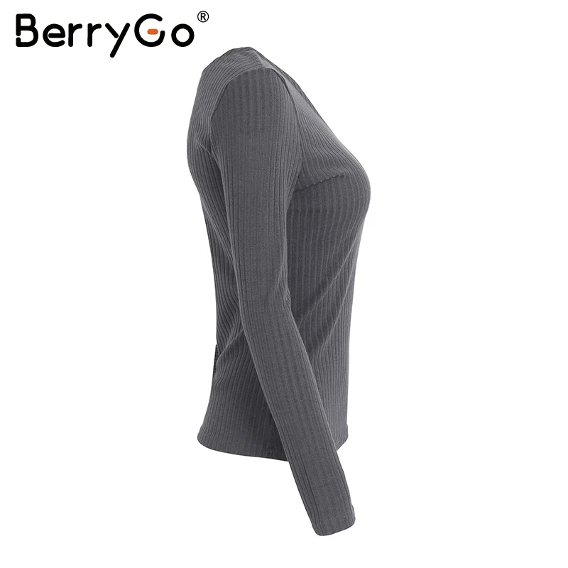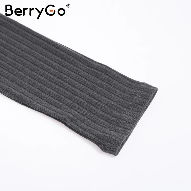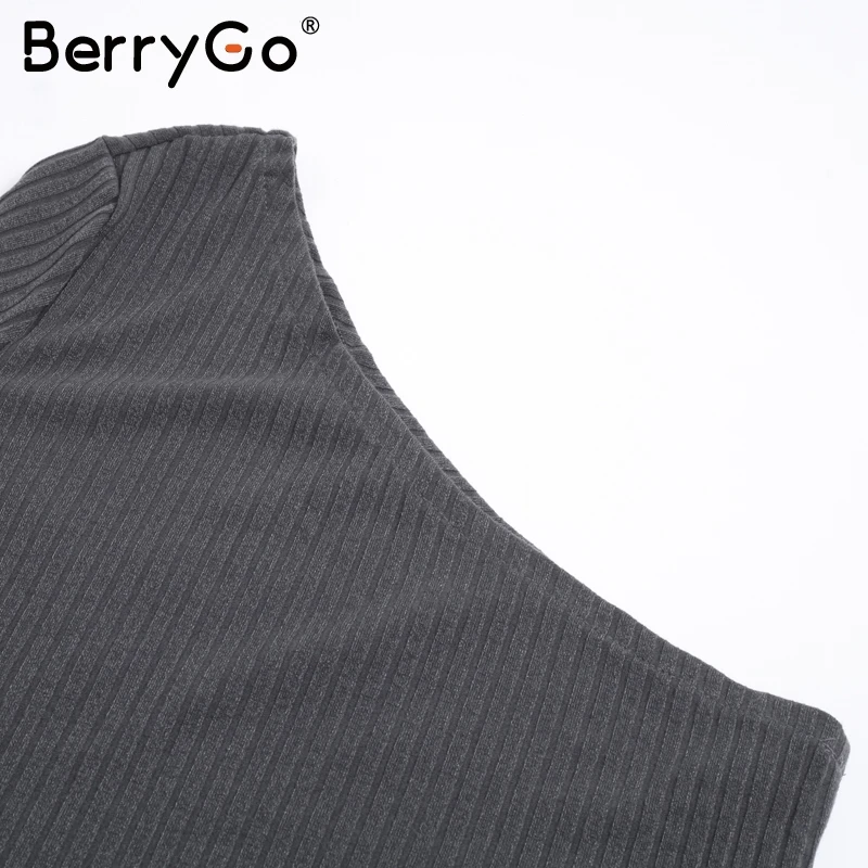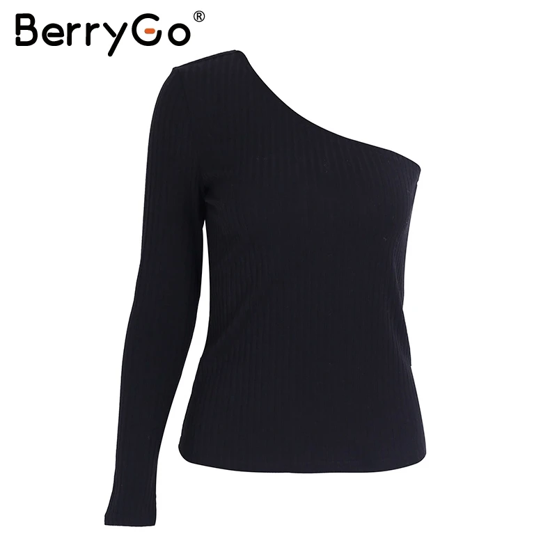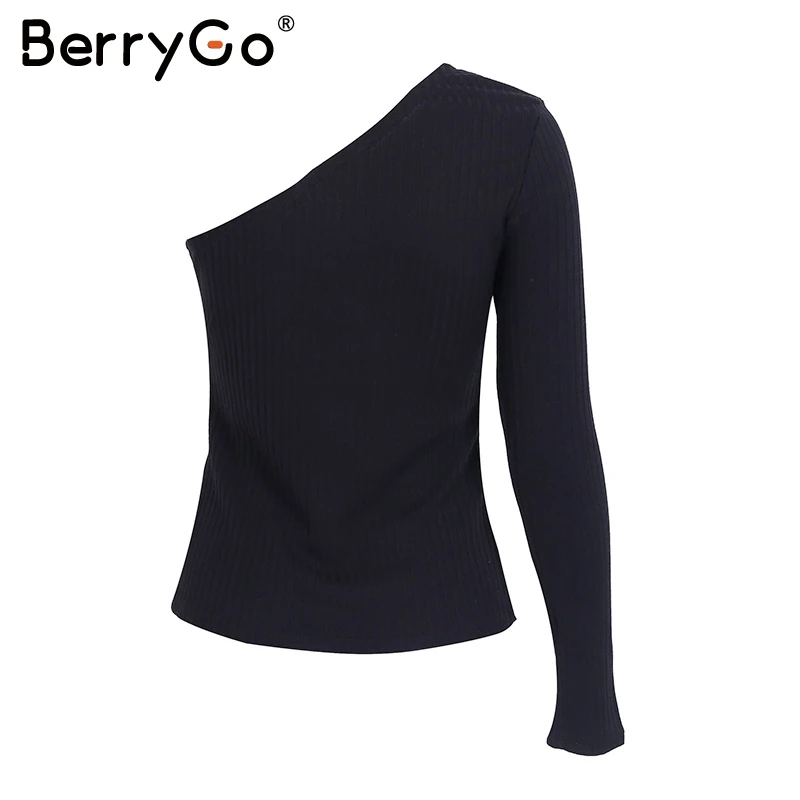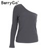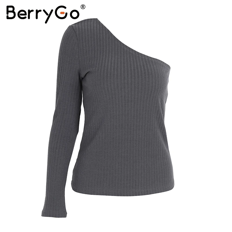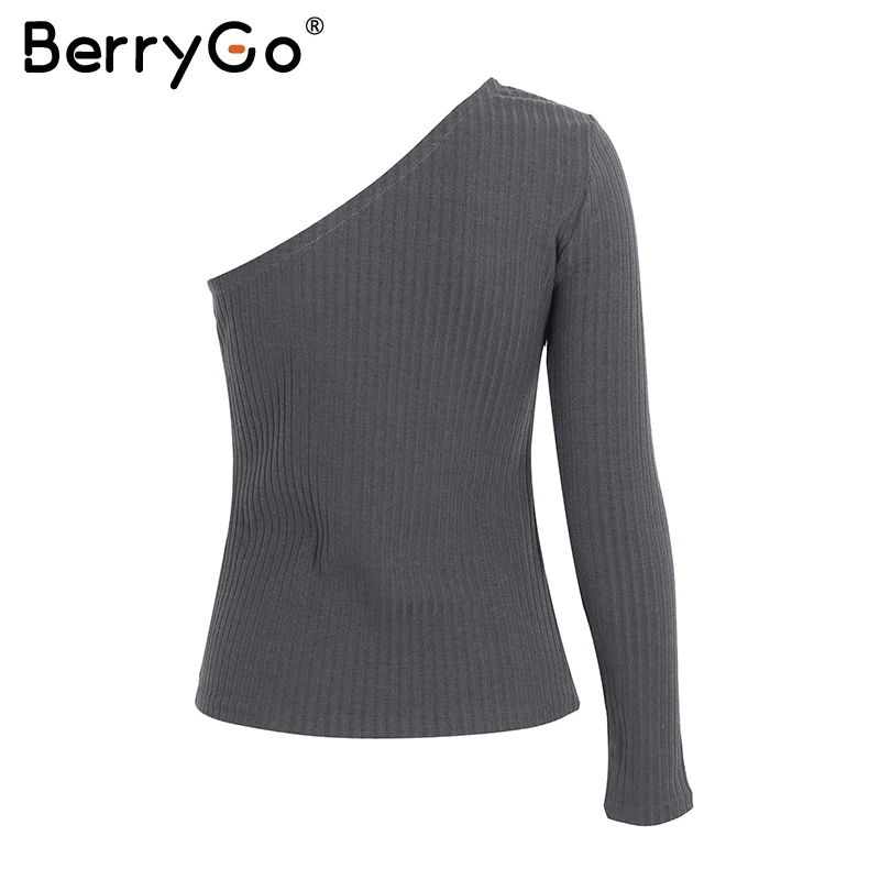 BerryGo Casual one shoulder knitted sweater tops Women autumn streetwear gray blouse shirt Winter sexy party femme top blusas