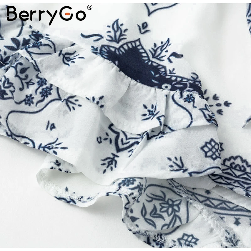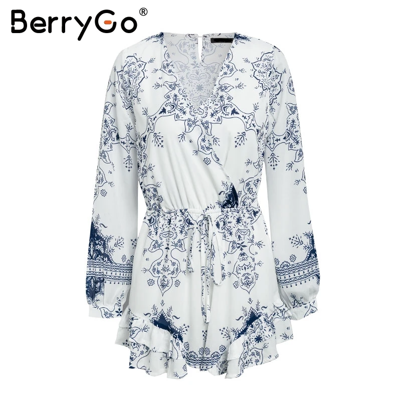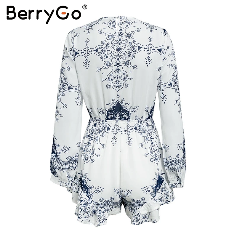 BerryGo Long sleeve floral print romper V neck loose casual jumpsuit women Summer beach short sexy jumpsuit playsuit 2018