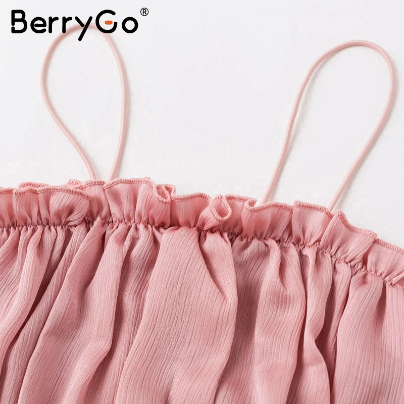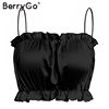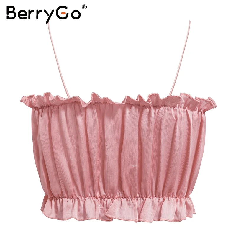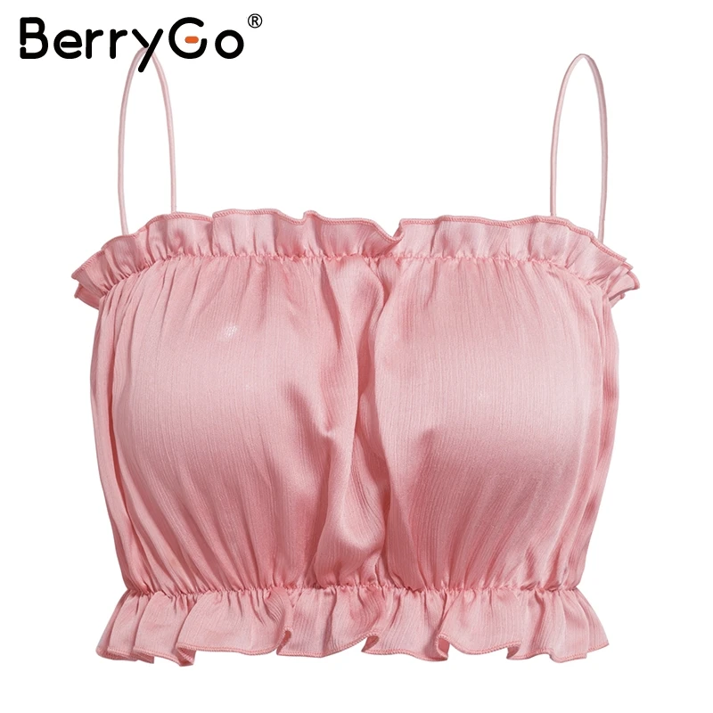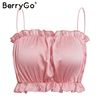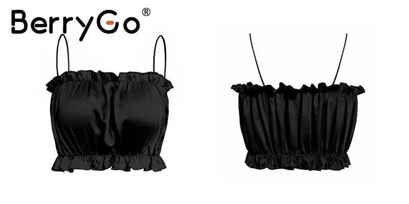 BerryGo Sexy strap stain crop tops women Elegant ruffles summer tops tank camis Casual black tops female shirts camisole 2018