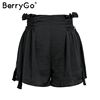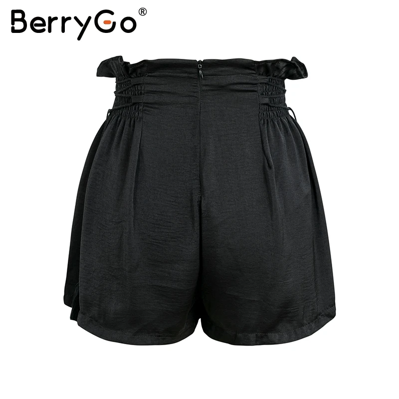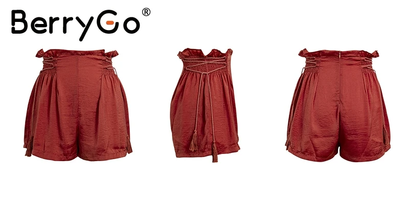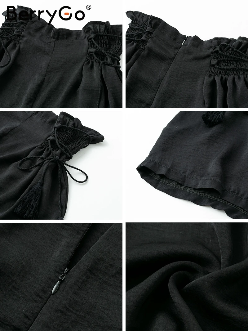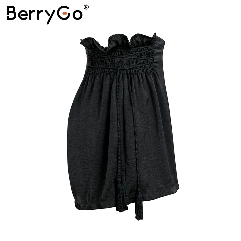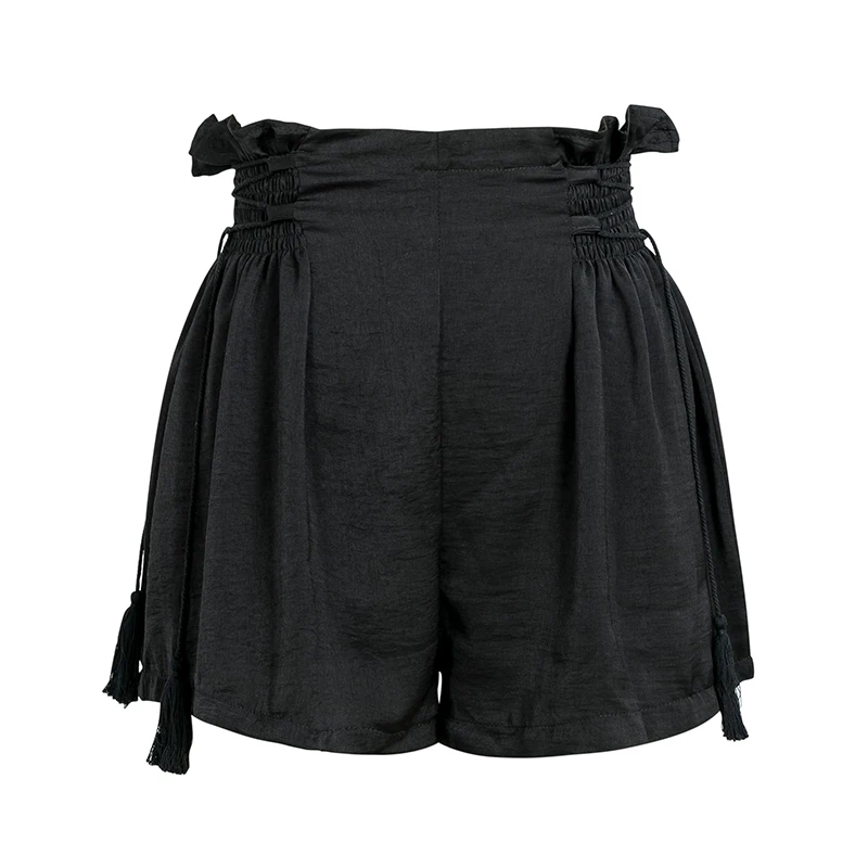 BerryGo Tassel lace up wide leg shorts Women casual ruffles loose black shorts female High elastic waist summer shorts 2018 new