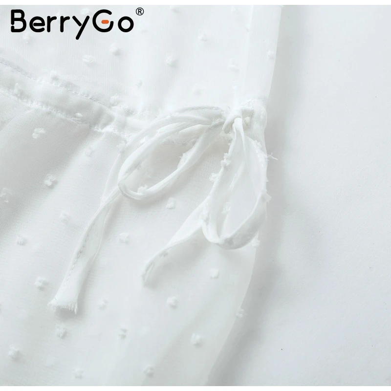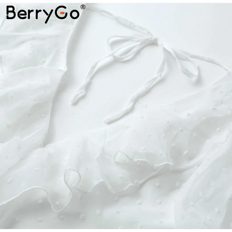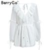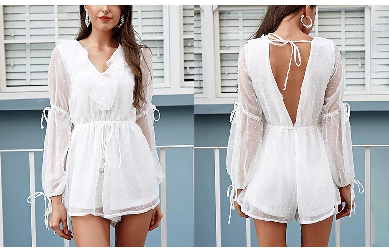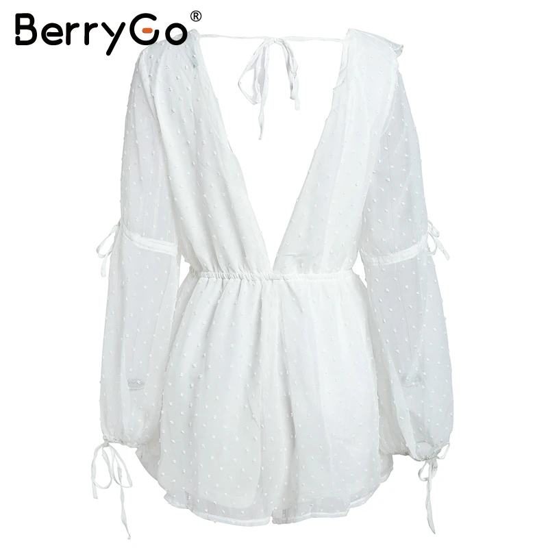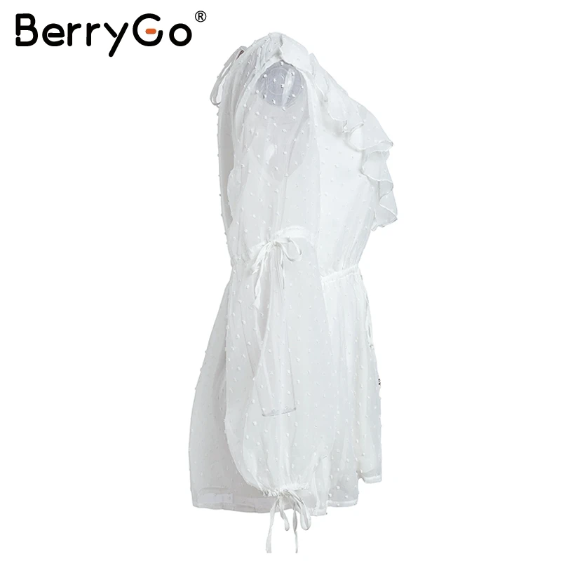 BerryGo Transparent chiffon rompers womens jumpsuit Elastic waist beach summer playsuit 2018 V neck sexy white jumpsuit macacao
