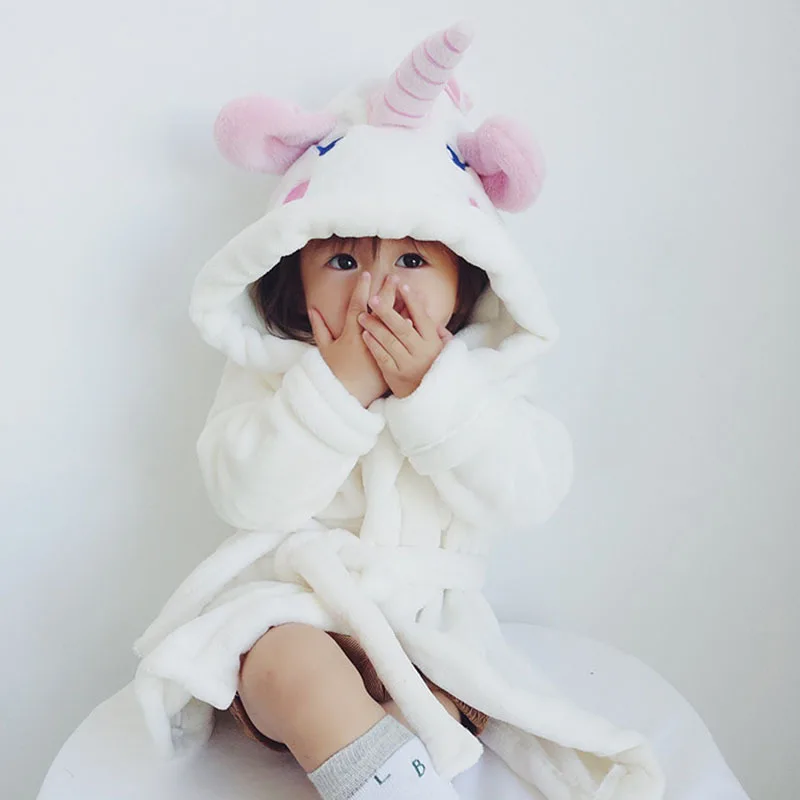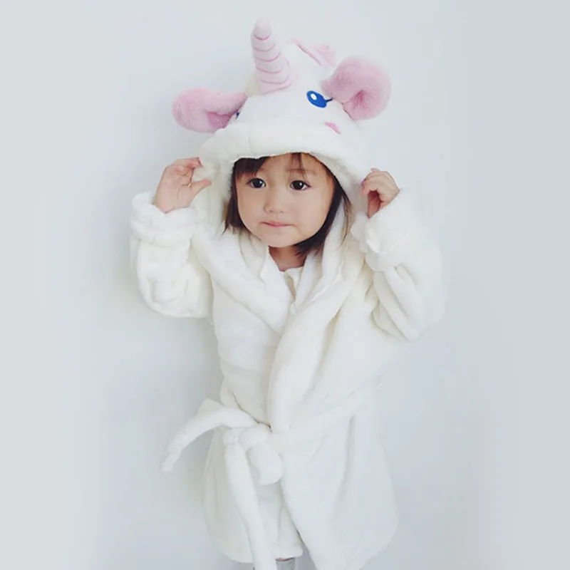 Best Unisex Lovely Unicorn Nightgown Baby Velvet Robes Kids Cartoon Pajamas Children Pokemon Bath Robe Home Wear Clothing