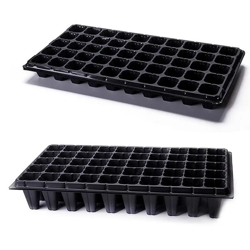 BESTOYARD 4pcs Nursery Seedling Plates PS Material 50 Holes Tree Seedling Plates Reusable Recyclable Nursery Sites (Black)