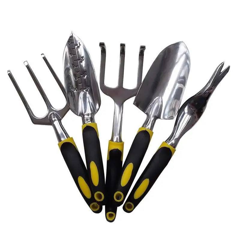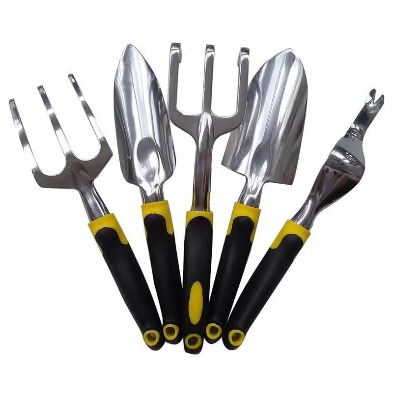 BESTOYARD 5PCS Garden Tool Set Trowel Fork Transplanter Cultivator Weeder (Yellow & Black)