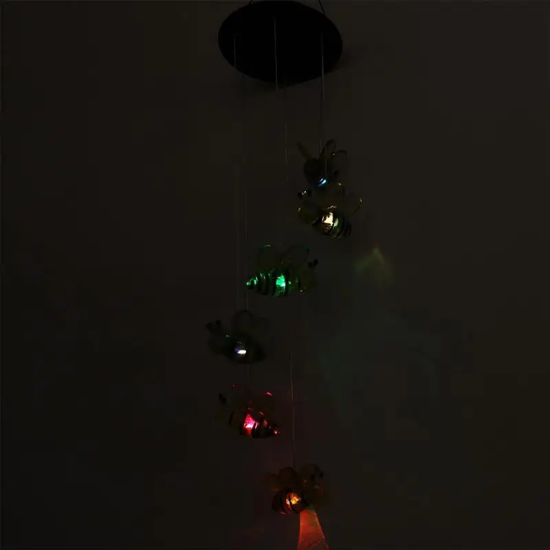 BESTOYARD LED Solar Wind Chime Bee Color Changing Mobile Wind Chime Light for Home Garden Bedroom Office Balcony Party